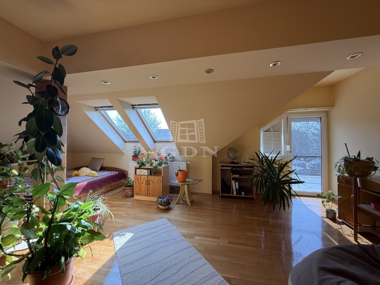 Tetőtér : A központi lépcsőn keresztül közelíthető meg. Itt helyezkednek el a további hálószobák, 2 hálószoba saját fürdőszobával, és gardróbbal rendelkezik.. A galéria másik feléről közelíthető meg a jelenleg tároló/ vendégszobaként funkcionáló + még 2 szoba.