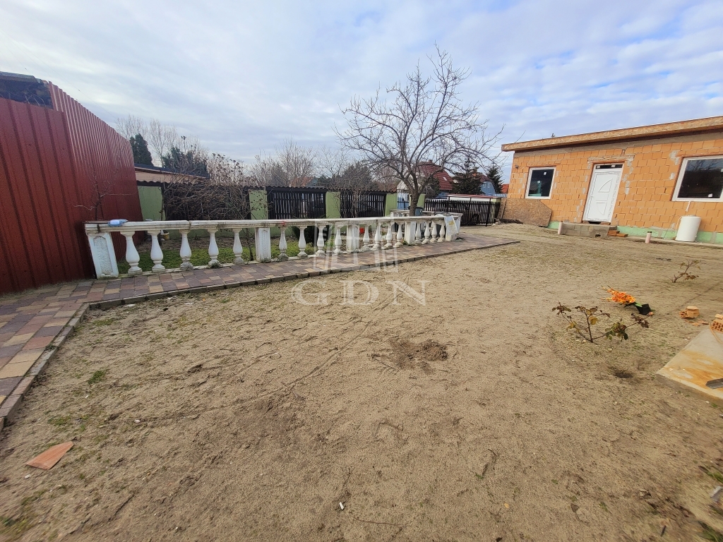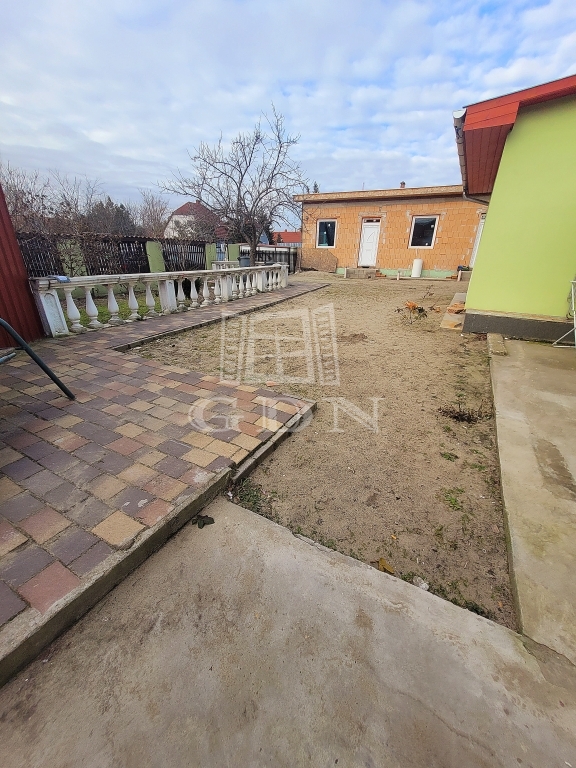 az udvarban egy már megkezdett, három különálló lakásból álló épület várja, hogy valaki álmot vigyen a falaiba.