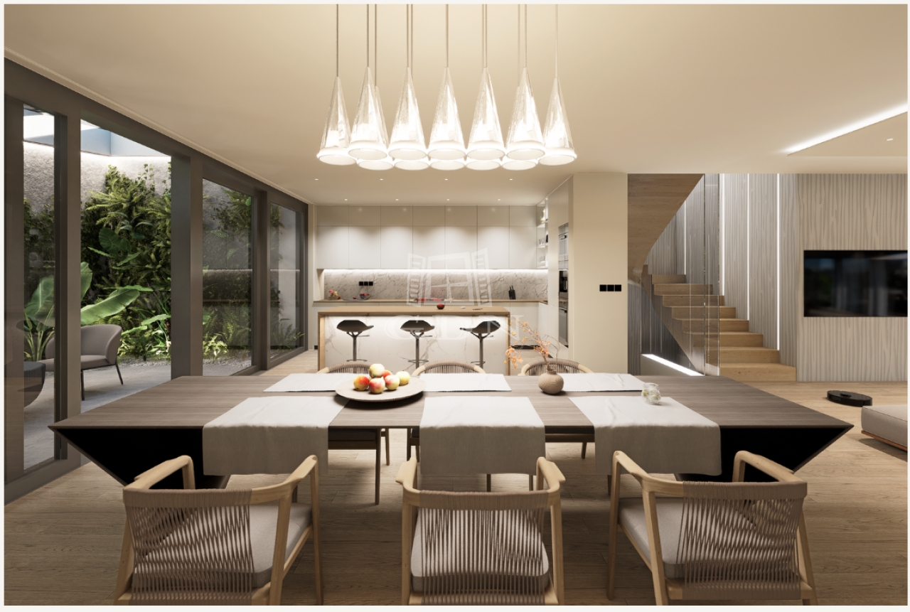Ez nem csupán egy ház, hanem egy életérzés. A 743 m²-es telken elhelyezkedő villa egy privát magánútról közelíthető meg, garantálva a teljes szeparáltságot és nyugalmat. A tervezésnél az „indoor-outdoor living” koncepció érvényesült: a hatalmas üvegfelületek elmossák a határt a belső terek és a természet között.