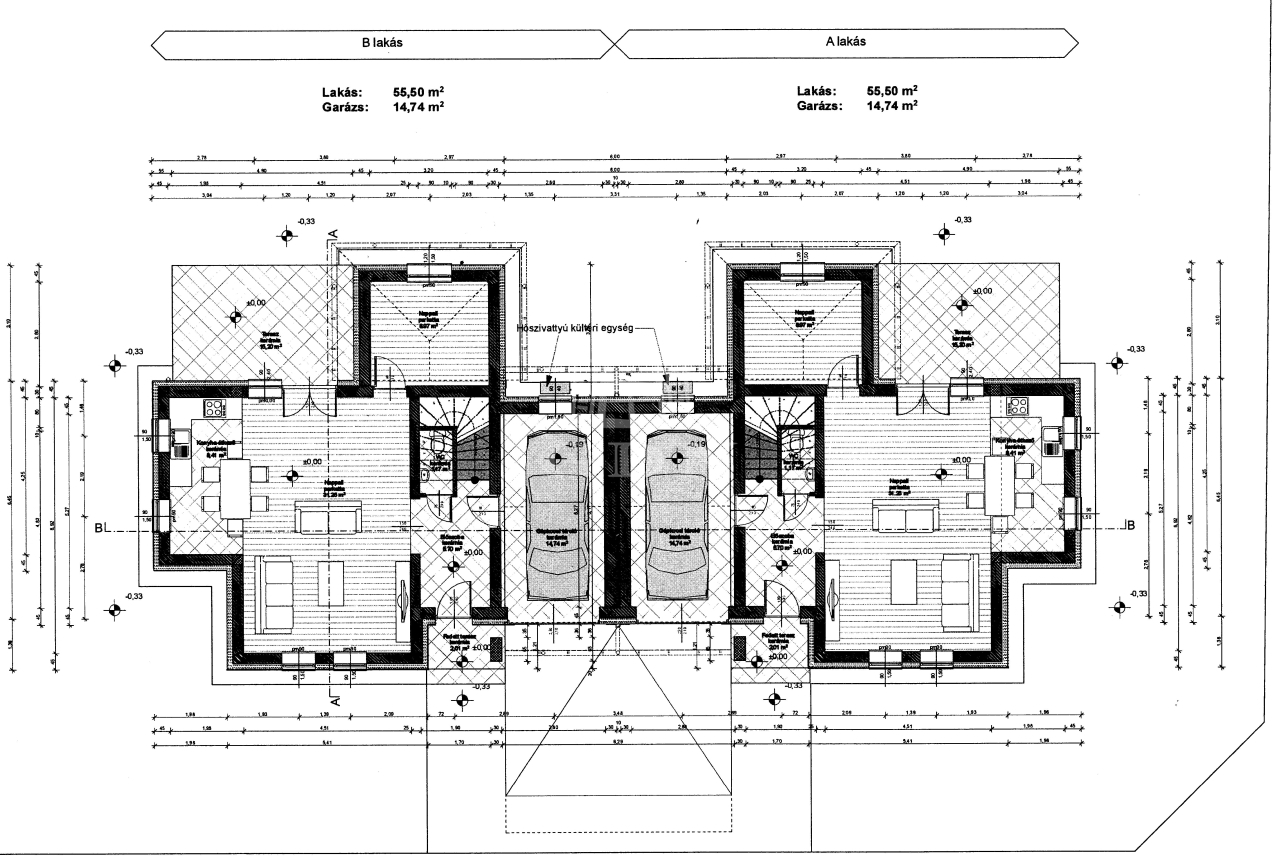 FONTOS ! Az "A" és "B" jelű házak garázsai beépítésre kerültek,