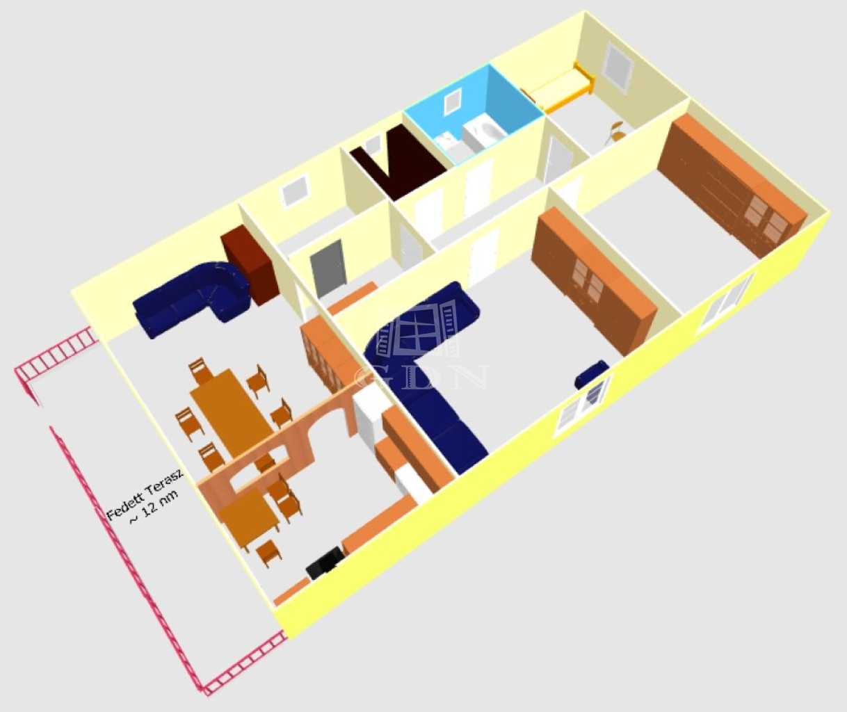 - fedett terasz.