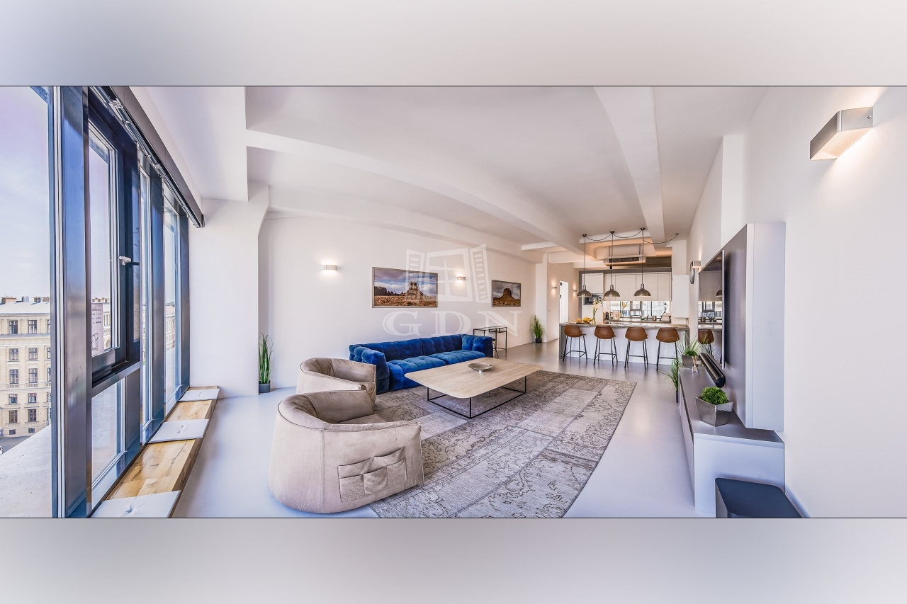 A hatodik emeleten további két lakás eladó, amely a fentivel összenyitható, így egy 275 m²-es panorámás otthon alakítható ki, egyedülálló, 20 méteres üvegfelülettel a városra.