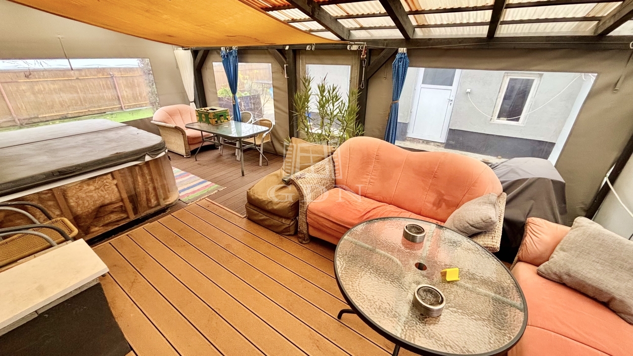 2025-ben esztétikailag belülről rehabilitálták. A nappaliból kilépve és közel 30 nm-es fedett terasz található jacuzzival, mely a vételár részét képezi.