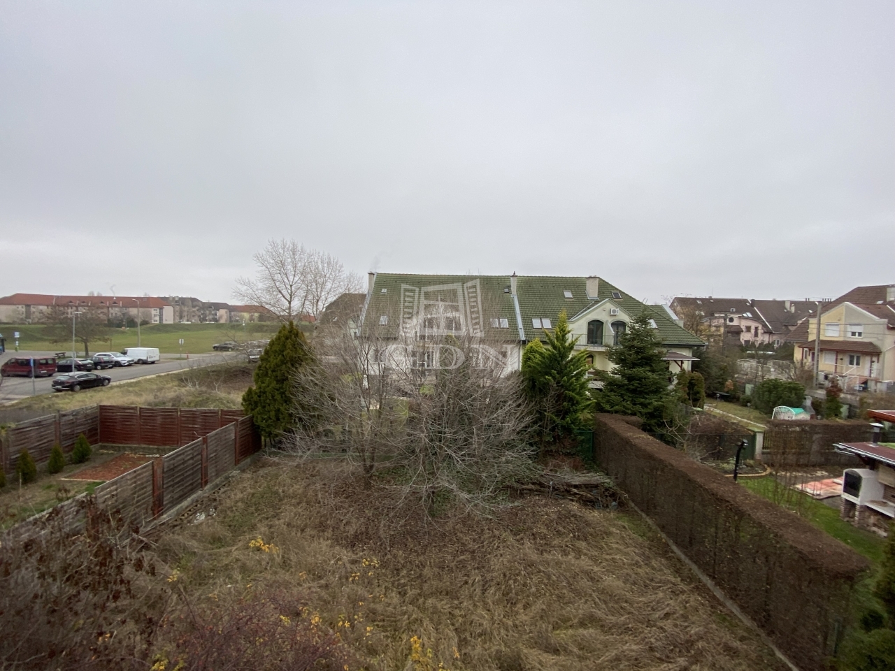 A 275 m²-es, külön leválasztott telekhez viacolor burkolatú kocsibeálló és járda tartozik.