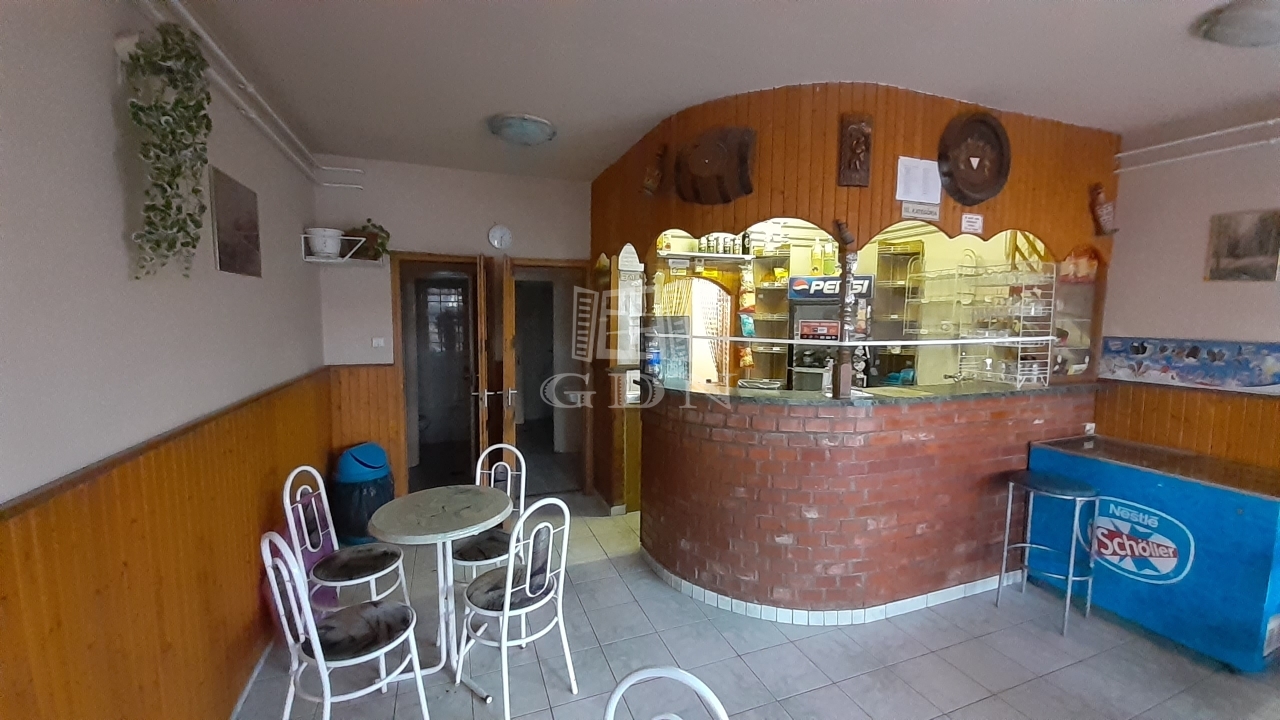 A földszinten található egy régóta működő vendéglátó egység, melyet további üzemeltetésre át lehet venni, de természetesen más jellegű vendéglátásra is átalakítható az épület.