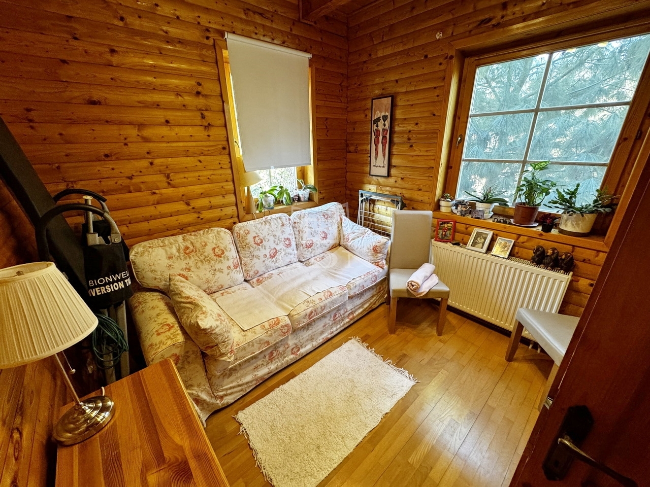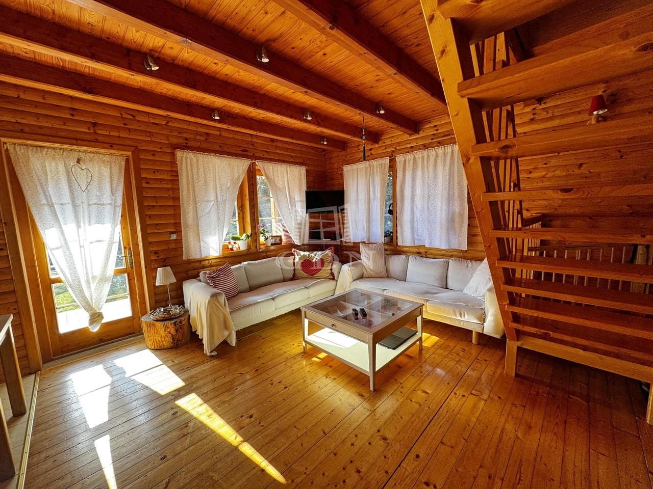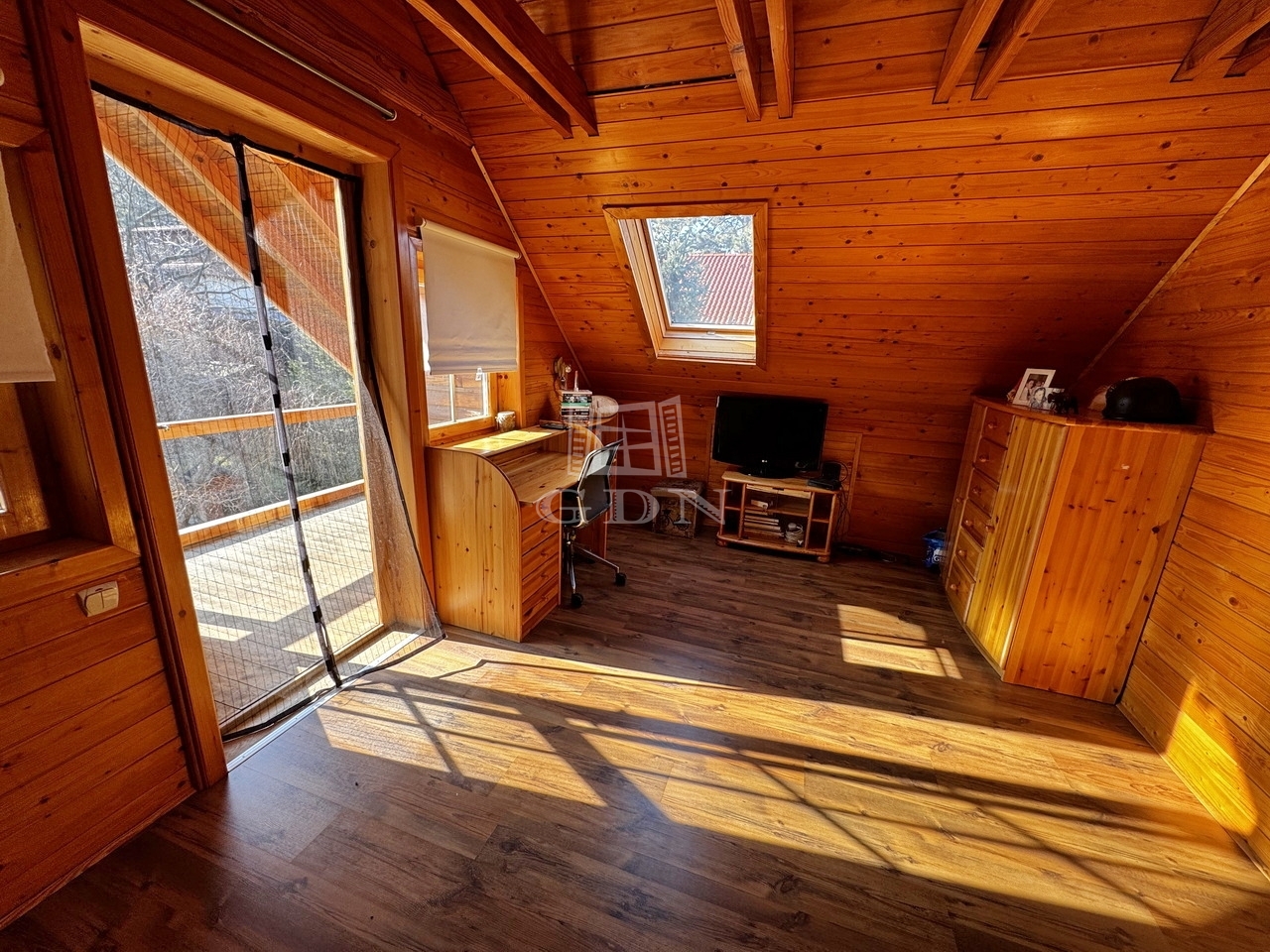 Nagykovácsi csendes, zöldövezeti utcájában, közvetlenül az erdő szomszédságában kínálunk eladásra egy kiváló állapotban lévő, könnyűszerkezetes, rönkház jellegű családi házat. A ház nyaralóhangulatot áraszt, mégis teljes értékű otthonként szolgálhat.