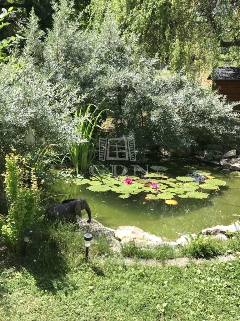 A kert szépen karbantartott, örökzöldekkel, kerti tóval, grillező-pihenő résszel. A telken található egy szerkezetkész téglaépület is, amely többféle célra alakítható (külön lakás, műhely, garázs, edzőterem, játszószoba stb.).