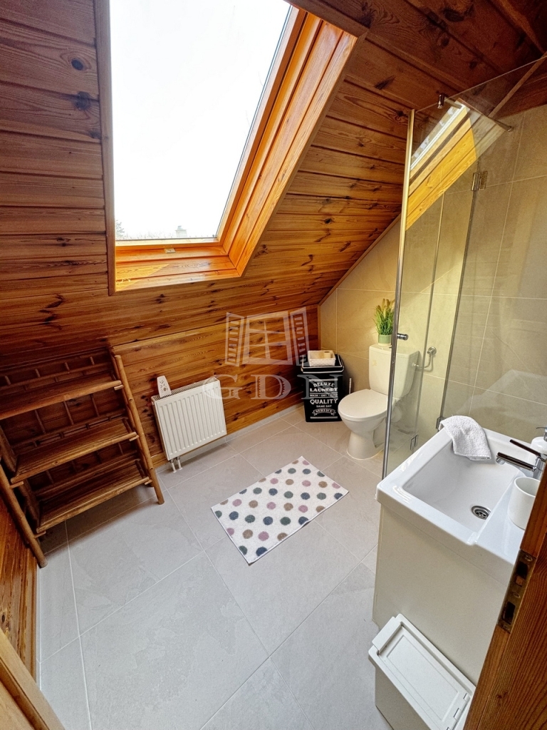 - Tágas fürdő (káddal és zuhanyzóval), külön WC