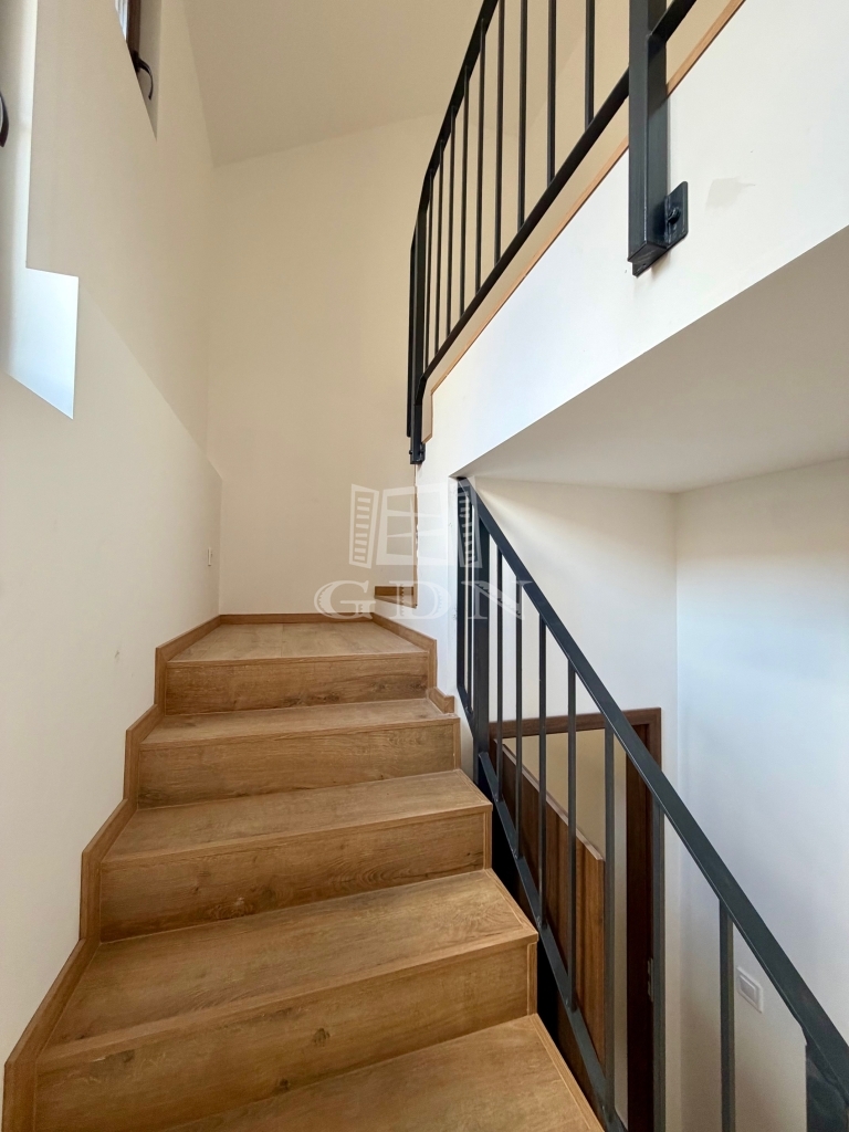 Az emeleti szinten két hálószoba, egy fürdőszoba és egy erkély található, már elektromos redőnyökkel felszerelve.