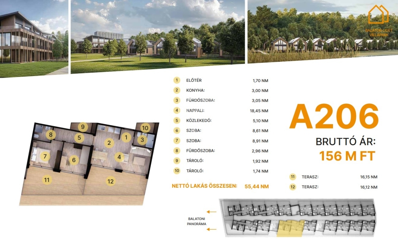 | 55 m2Alapterület | 1 + 2 Szoba |