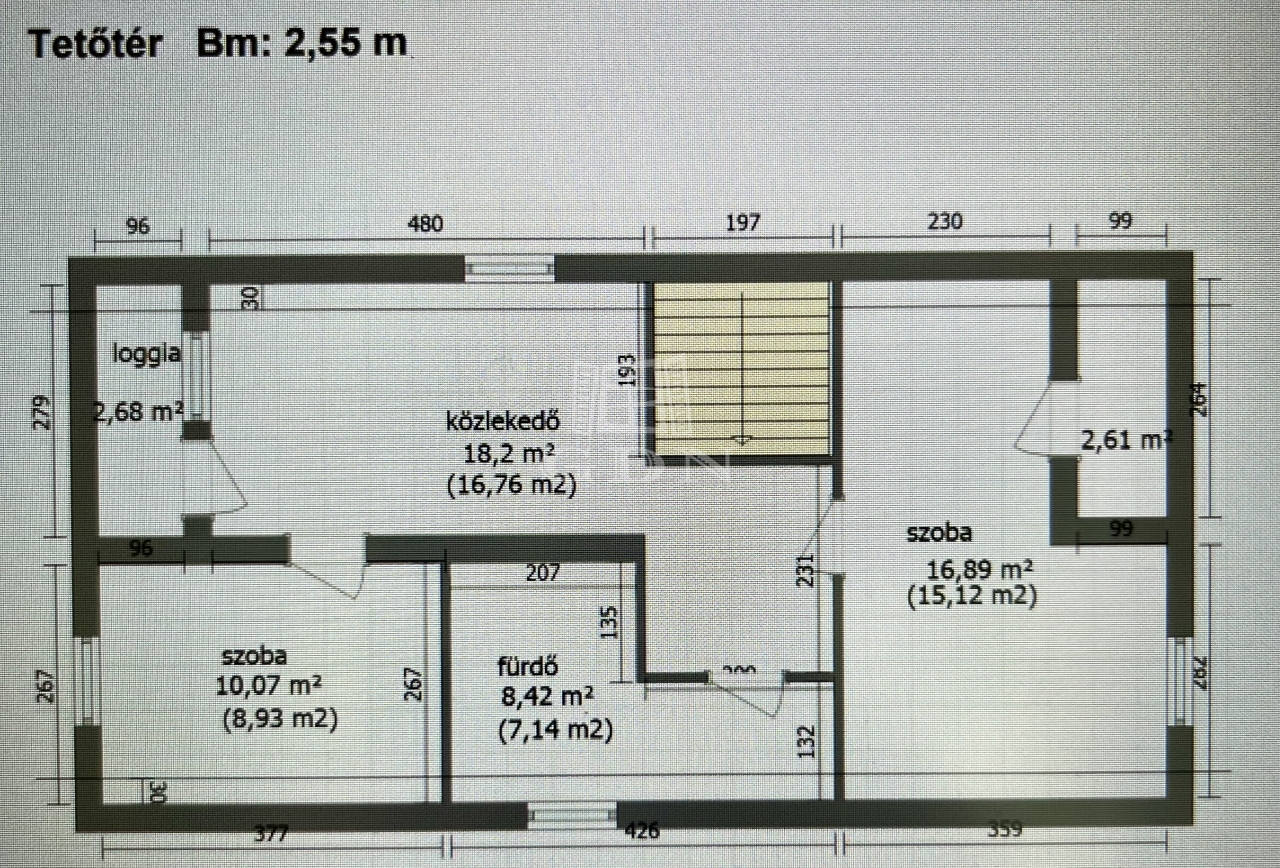 A tetőtér beépített, így további hasznos tér áll rendelkezésre.