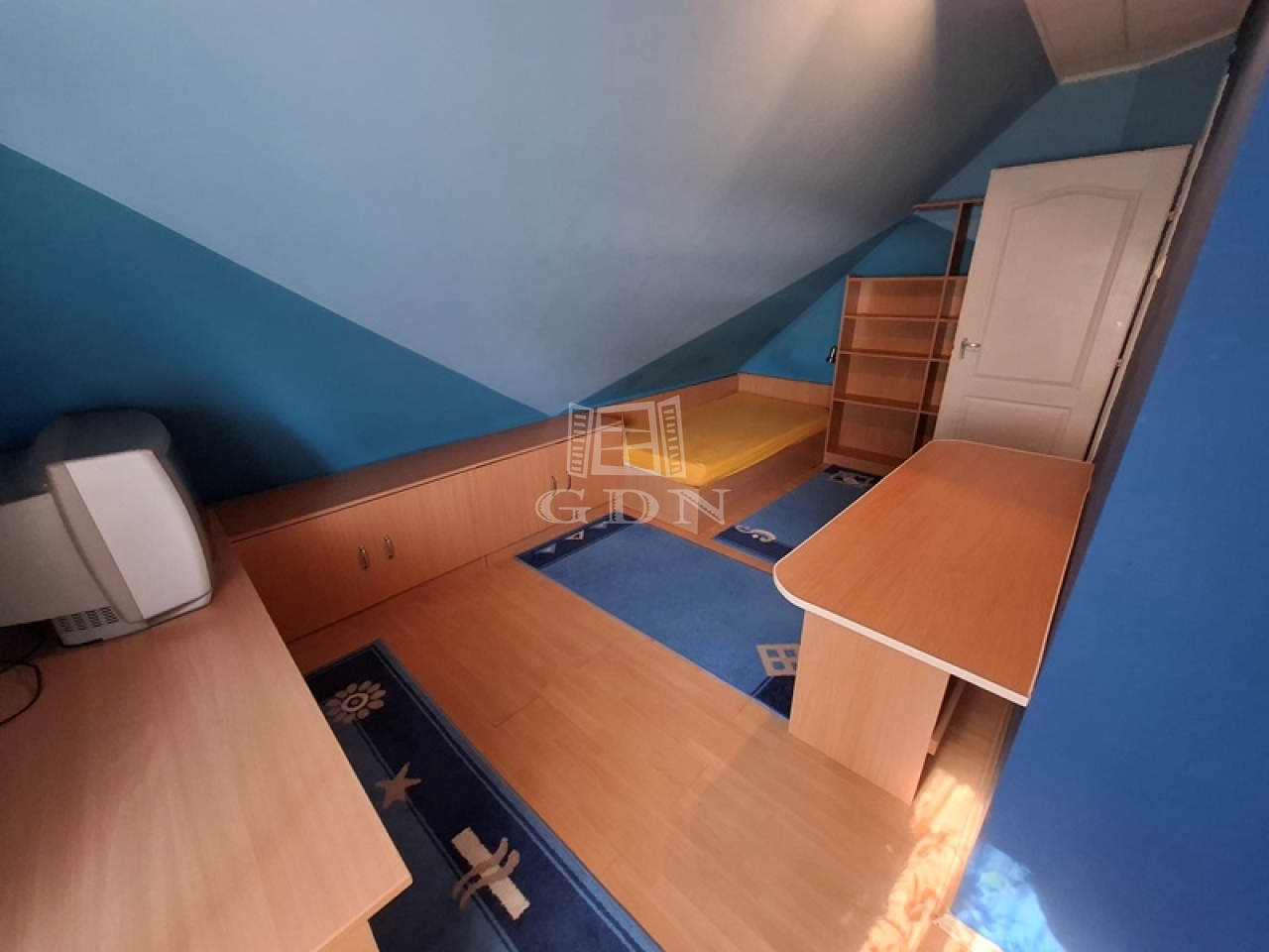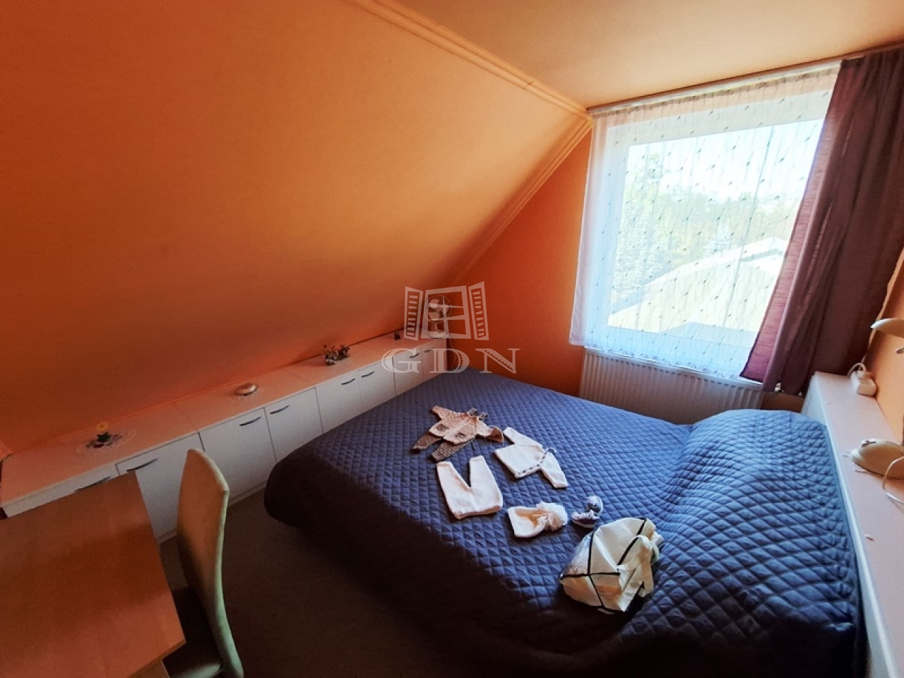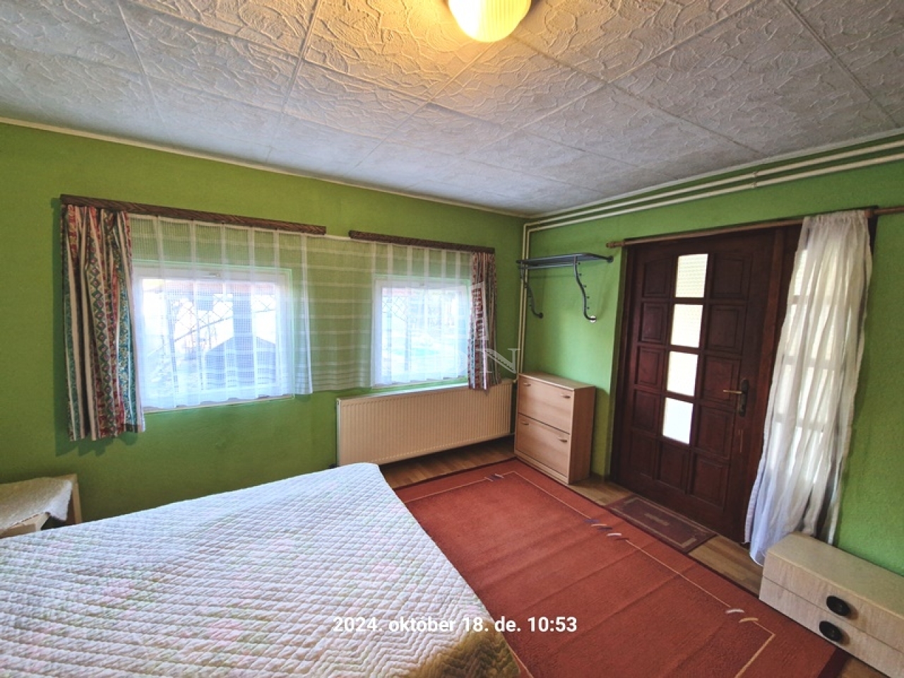 Helyiségei: alsó szinten, előtér, nappali,konyha, étkező, hálószoba, fürdőszoba,