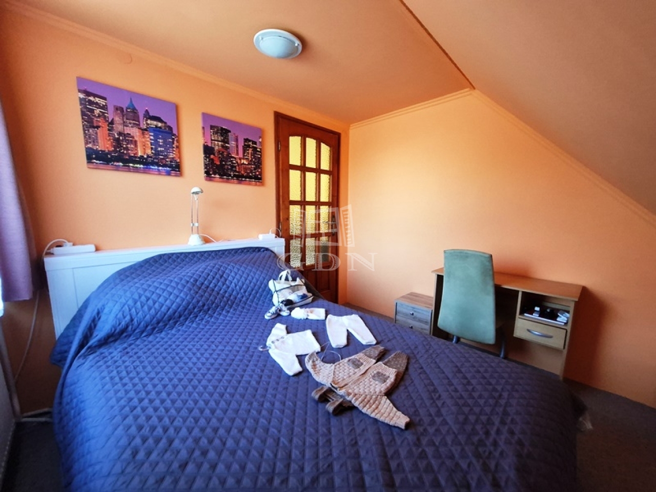 emeleten:3 hálószoba, közlekedő, gardrób, fürdőszoba, fedett terasz.