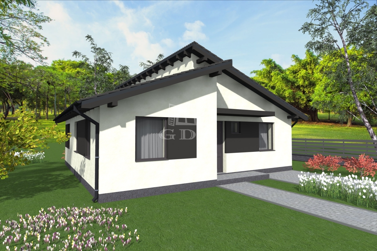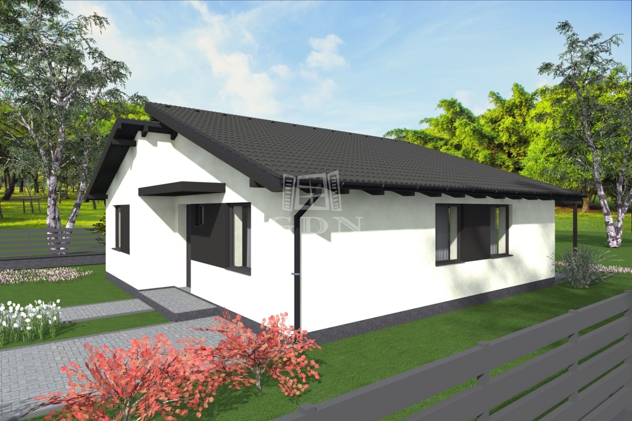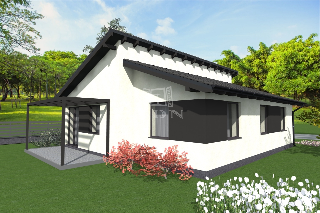 The cold and warm tiling, the windows (size, shape), the front door are optional, the colouring of the house and the fence can be completely customized. The internal partition walls can be moved during the construction.
