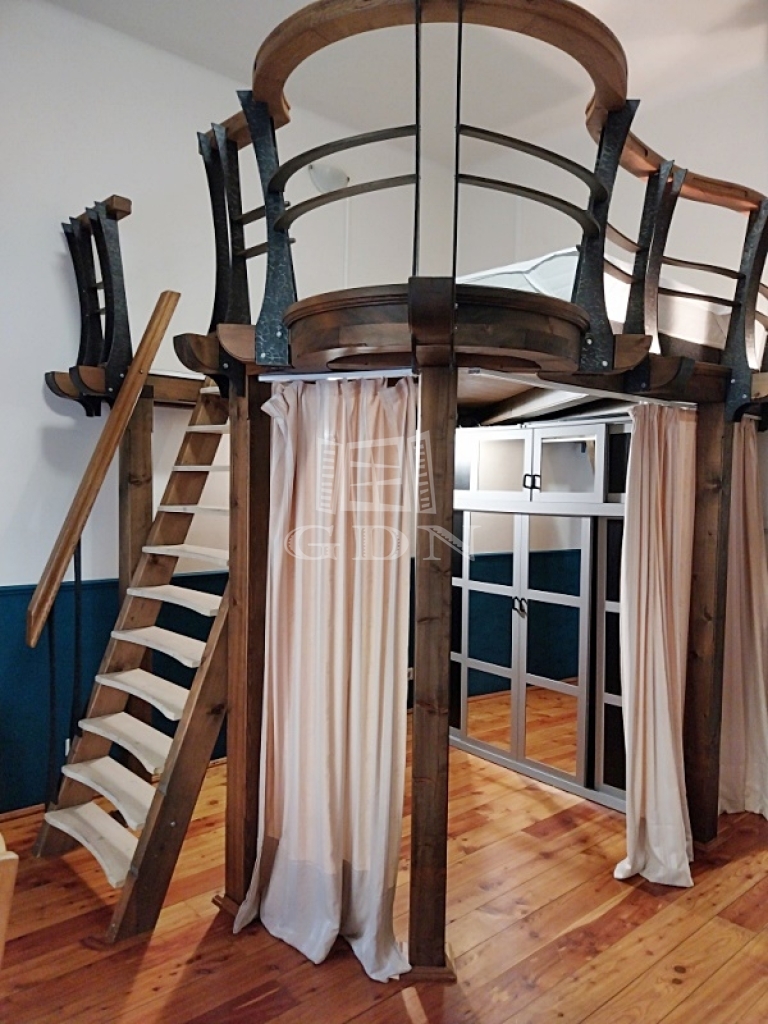 Az ebédlőből lépünk a 25 nm-es utcai kilátással rendelkező szobába. A szoba életterét növeli a látványos- különlegesen megmunkált épített 6 nm-es álló galéria.