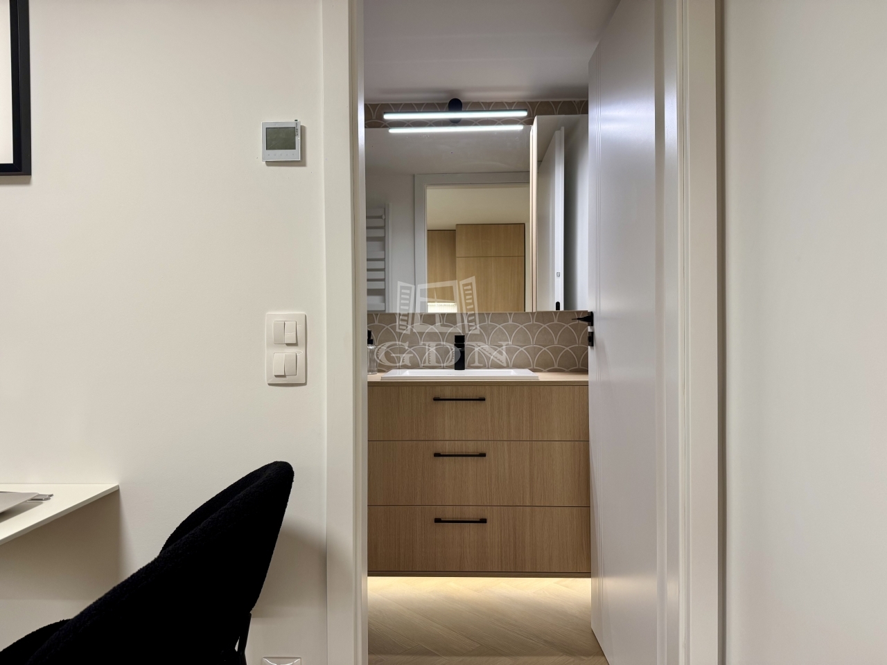 A lakás magas belmagassága lehetővé tette egy 11,68 m²-es állógaléria kialakítását, amely hálószobaként és extra tárolóként is funkcionál, így a tér jóval tágasabb és kényelmesebb a megszokottnál.