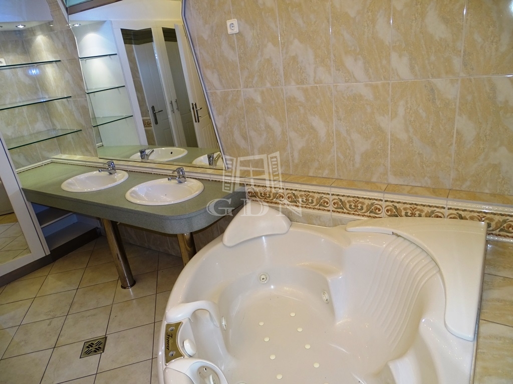 Az épületben a hatalmas, terasszal összenyitható, kandallós nappali, és a világos konyha mellett 6 szoba és 3 fürdőszoba található, exkluzivitását a különleges, A. VARGA IMRE festőművész által díszített beltéri medence adja, mellette egy nagyméretű szaunával.