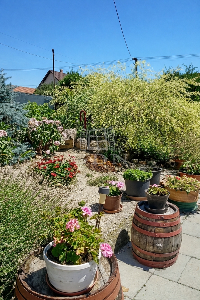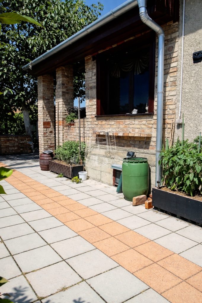 A rendezett, térkövezett udvar több autó számára biztosít parkolási lehetőséget. Melléképületek és kocsibeálló is kialakításra került, a ház előtt elhelyezkedő kertet pedig igényes évelő növények teszik igazán hangulatossá.