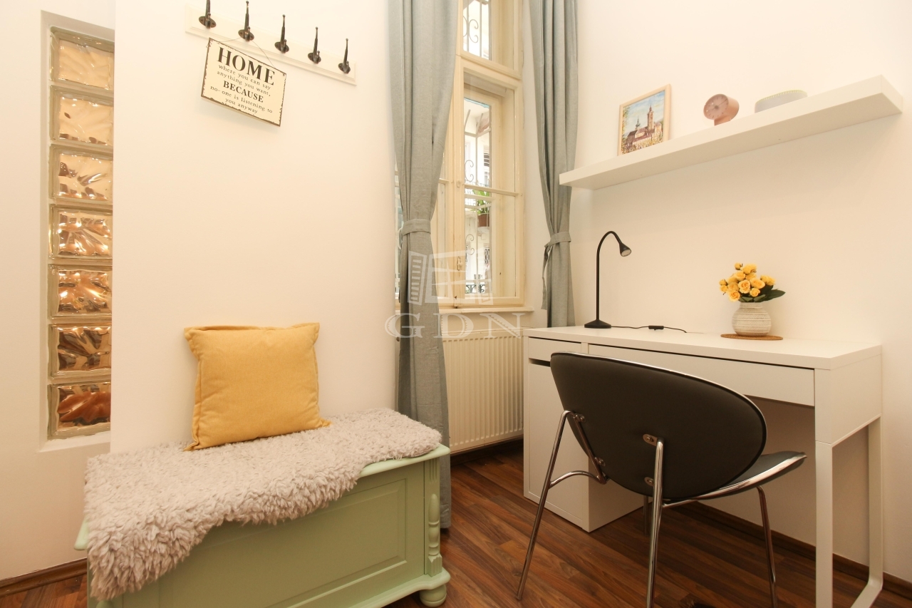 Az ingatlan Terézváros központi részén található. A lakás egyediségét a tradicionális polgári hangulat a finom belsőépítészeti megoldások és az egyedi lakberendezői munka teszi izgalmassá.