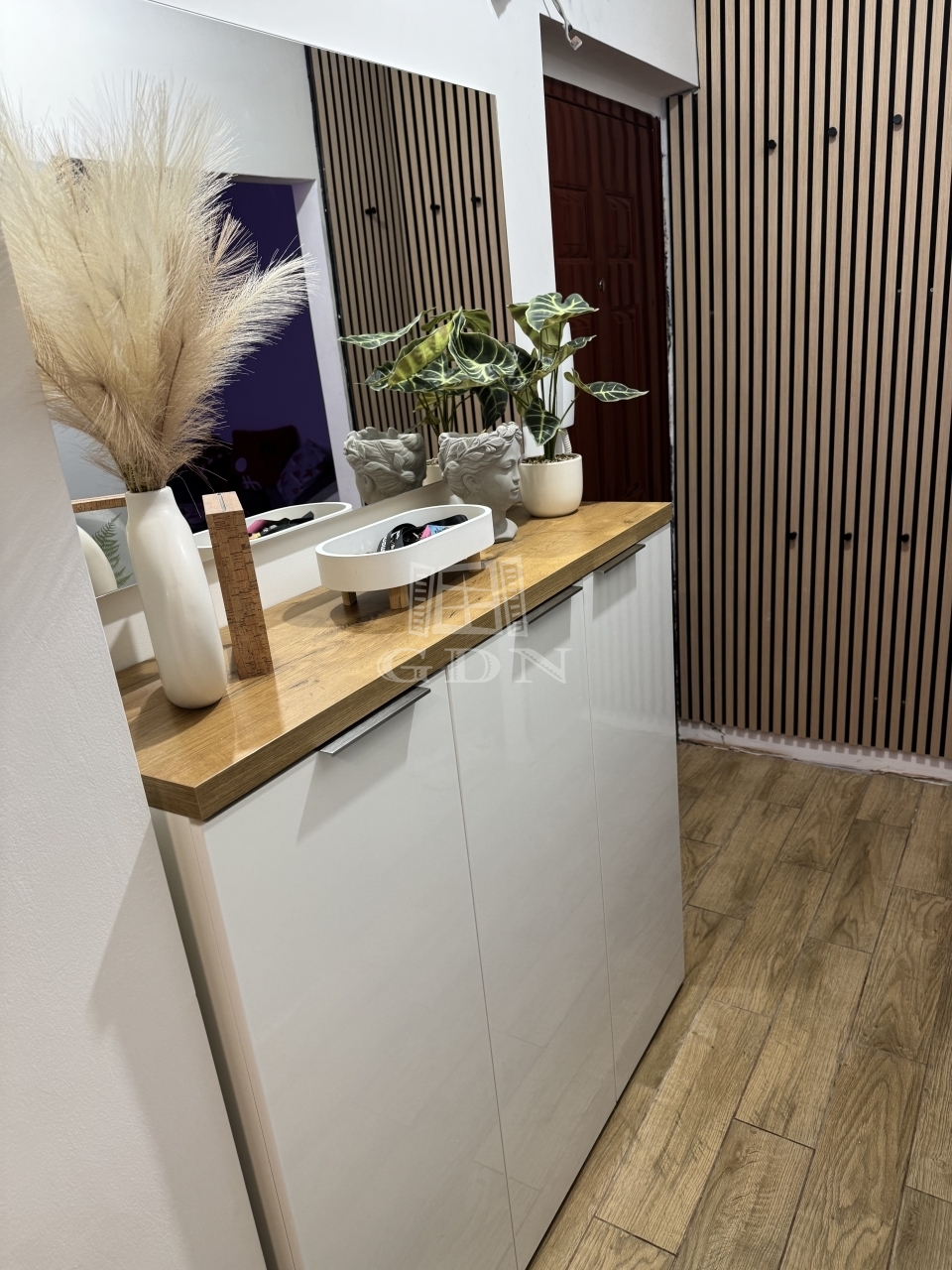A lakás 1 hálószobával, 1 nappalival, külön nyíló konyhával, kádas fürdőszobával, gardróbbal és egy (jelenleg) loggiával rendelkezik. A loggiát elkezdték erkélynek alakítani, ez egyelőre félbemaradt. Régen egy kis szobaként funkcionált így igény szerint akár így is hasznosítható. Az ingatlan vételárába a beépített dolgok számítanak bele, a többi bútor megegyezés kérdése.