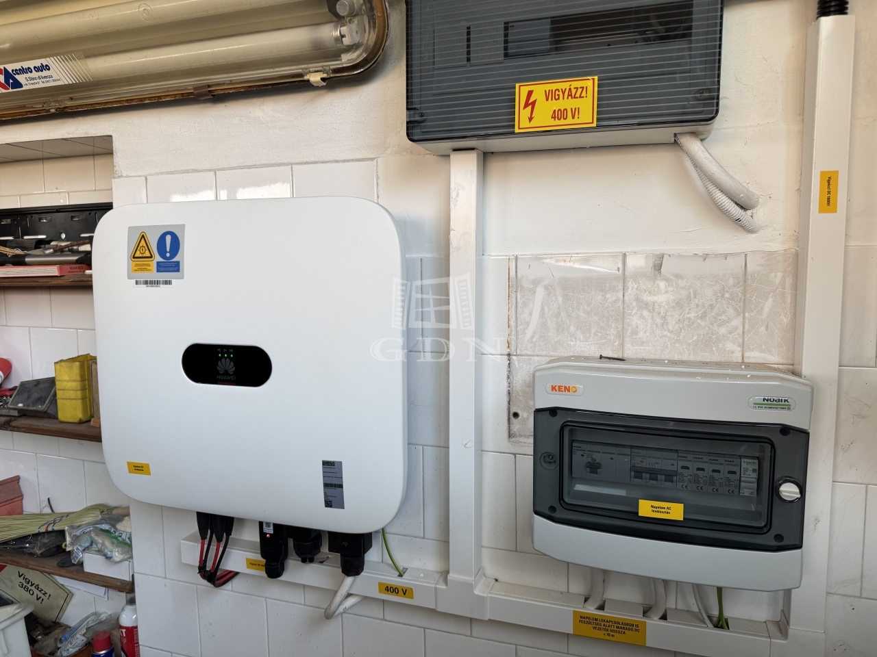 - napelem rendszer kiépítve, 12 kW a teljesítménnyel, Inverter 10 kW, 29 db panel van a tetőn.