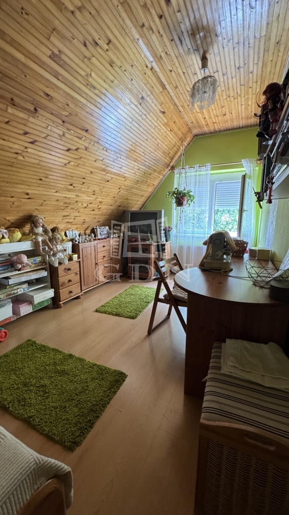 A nagyobb ház 120 nm- es, nappali + 4 szobás.