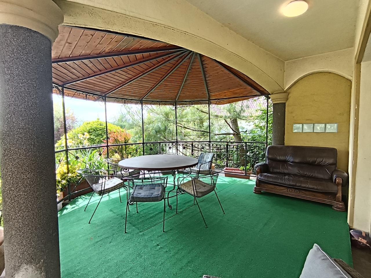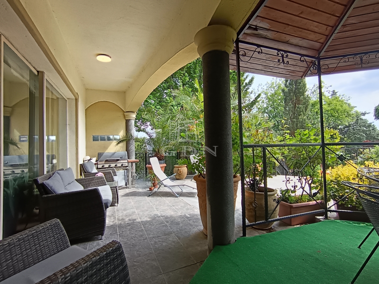 A földszintről a 74 nm nagyságú teraszra mehetünk ki, ahol kerti pavilon dísziti a környezetet.