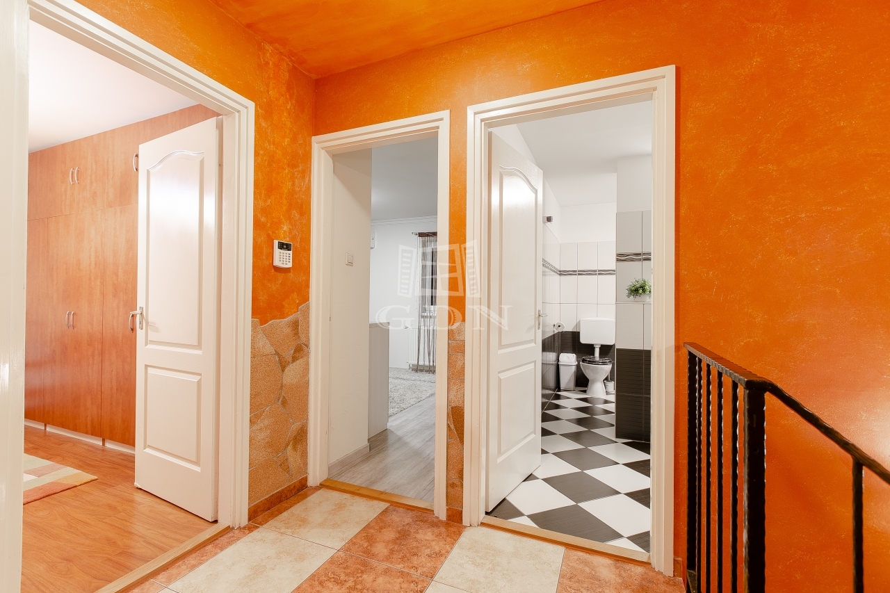 Megvételre kínálok Pest vármegyei Mogyoródon, 450 nm-es telken, délnyugati fekvésű, nettó 151 nm-es, bruttó 178 nm-es, 5 szoba + amerikai konyhával ellátott, gyönyörű állapotban lévő, belső kétszintes, ikerház felet.