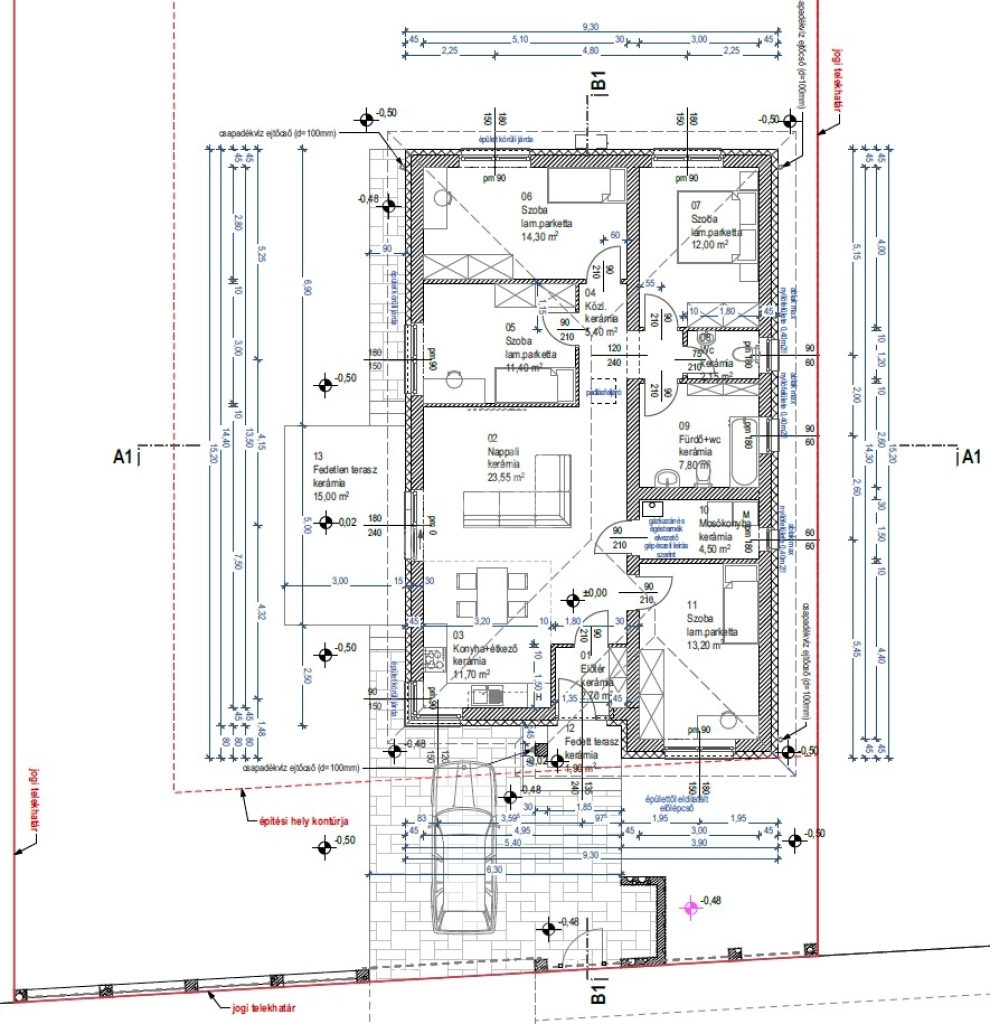 Az új építésű családi ház várhatóan 8 hónapon belül kerül átadásra, mely korszerű hő takarékos építészeti megoldásokat alkalmazva készül el. A falazata 30-as téglából épül, mely 15 cm-es EPS homlokzati hőszigetelést kap. A födém szerkezete 15 cm-es ásványszálas hőszigetelésű lesz, így az egész épület energetikai szempontból A++ kategóriájú.