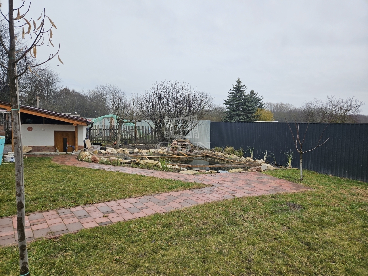 Dupla állásos garázs, tároló, melléképületek, baromfiudvar, kerti tó, gondozott hátsó veteményes kert már kialakításra került.