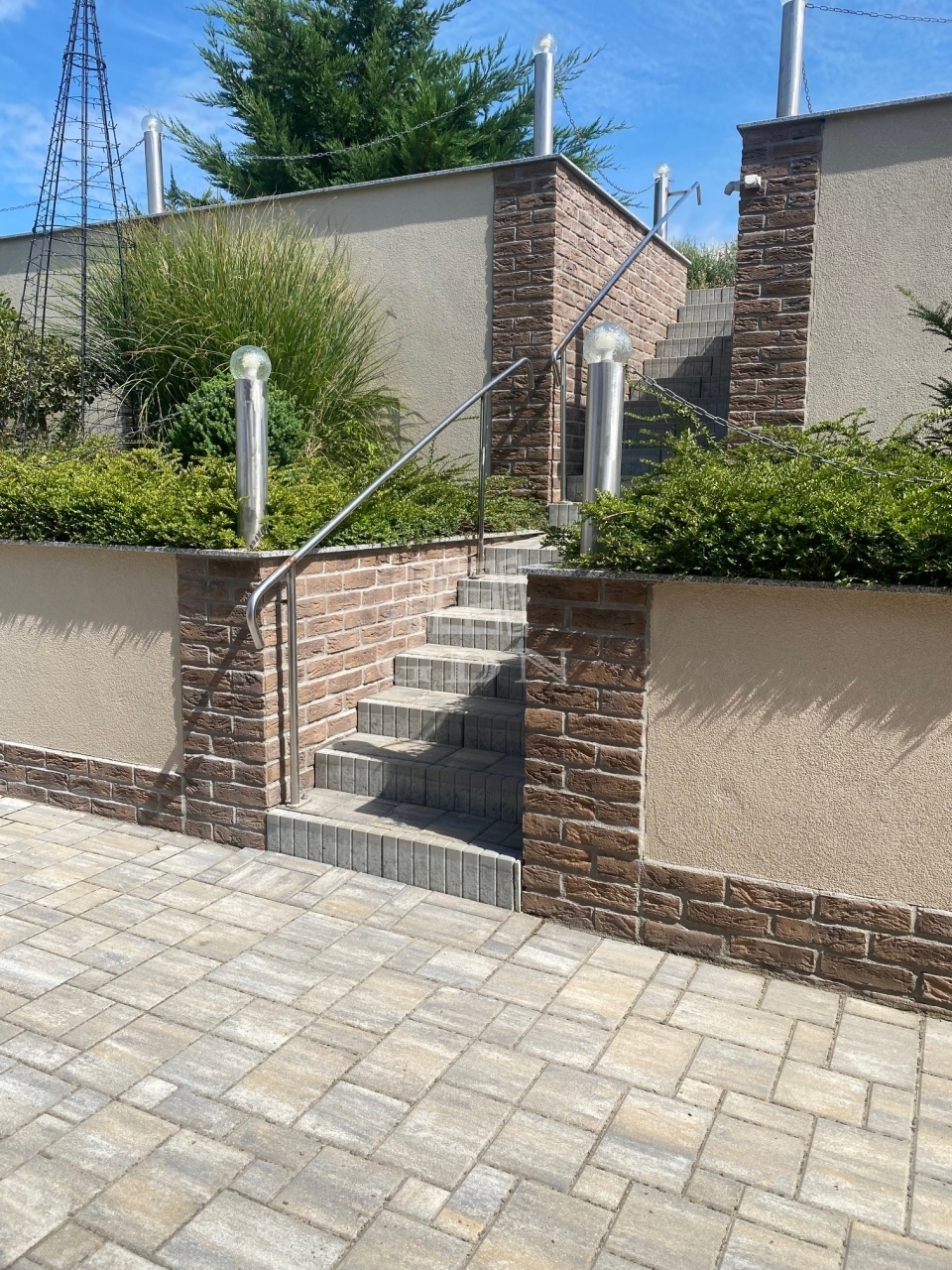 A térkövezett parkoló több autó számára helyet biztosít.