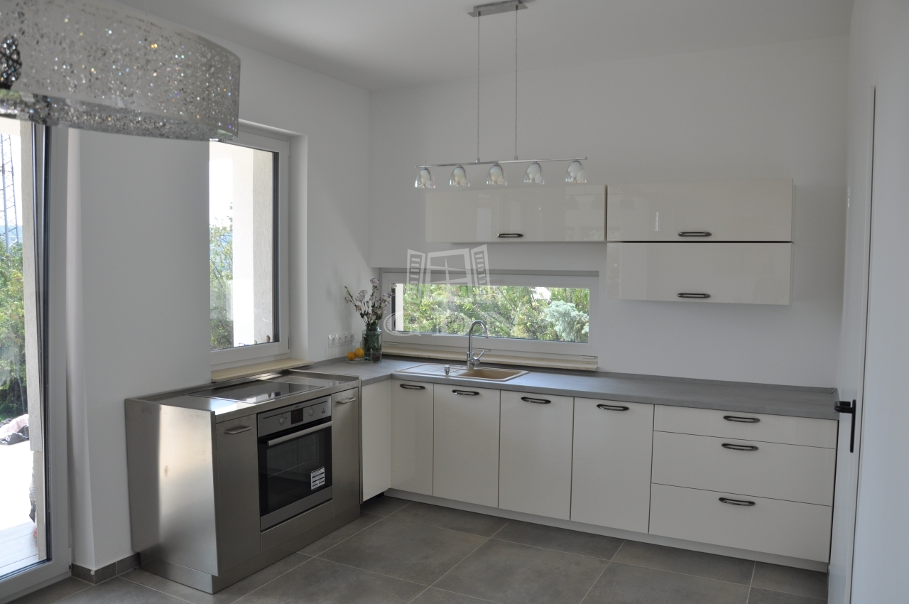 2017-ben épült, neves tervező elképzelései szerint. Elrendezése átgondolt. Sok a nagyméretű ablak, ami még világosabbá, nyitottabbá teszi a tereket.