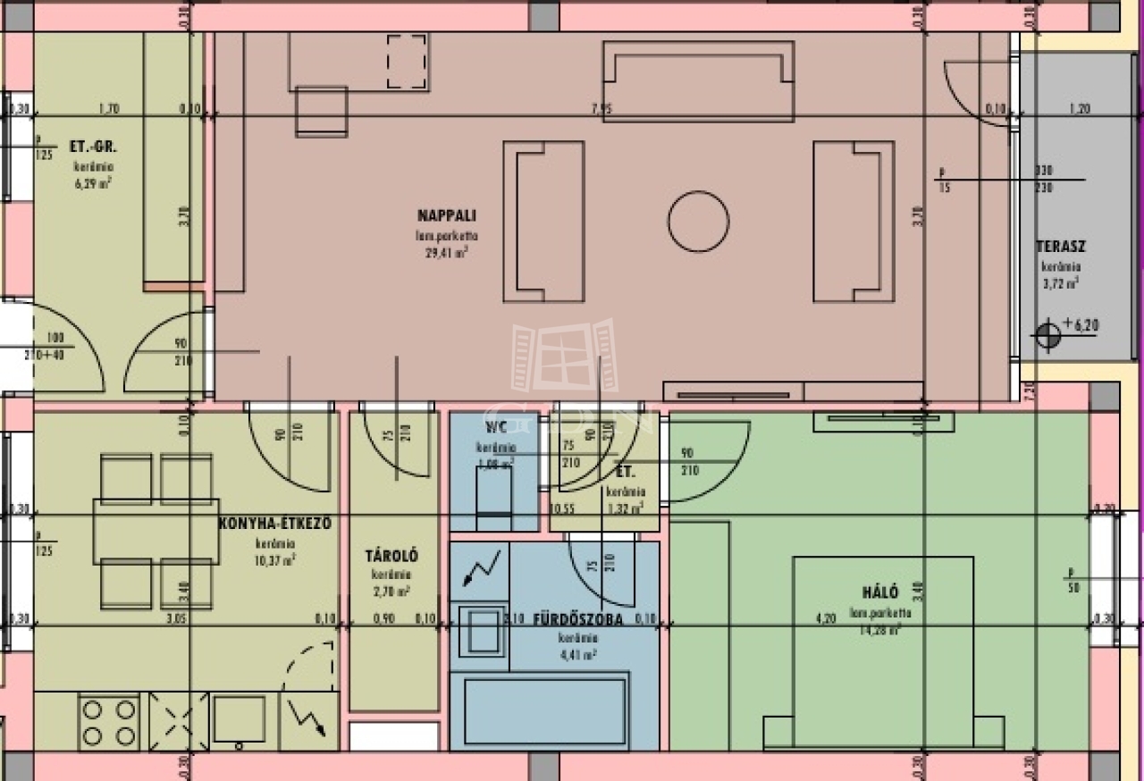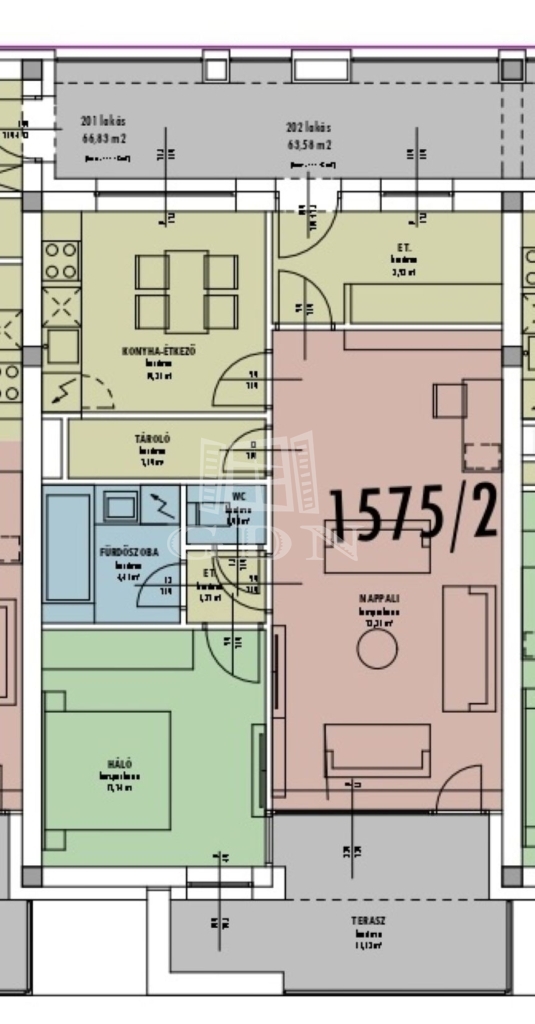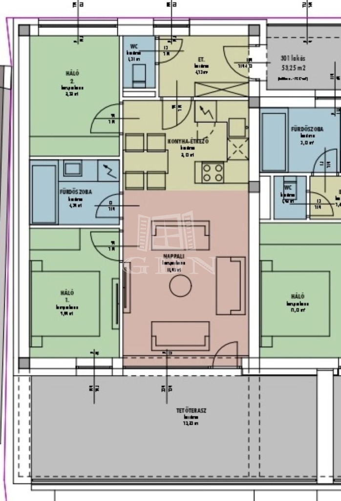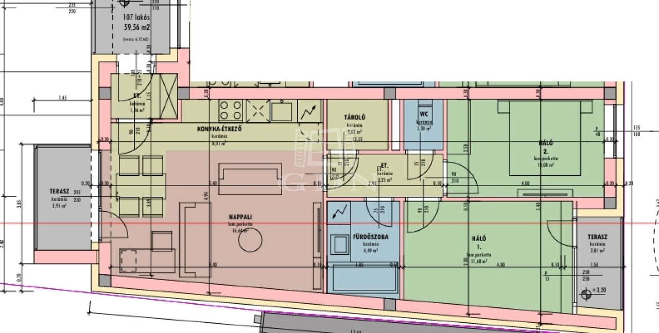 60 m2Alapterület 2 Szoba