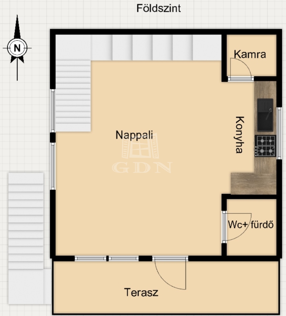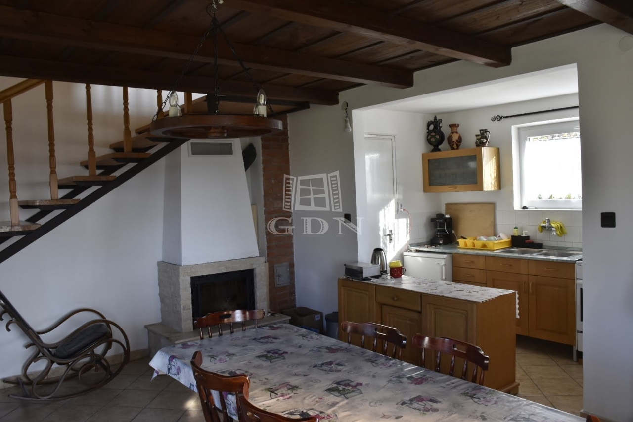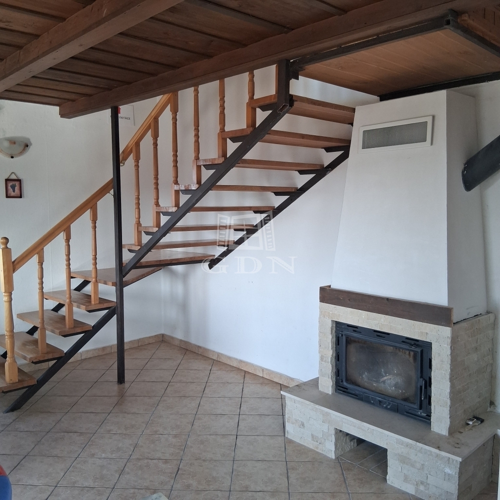 - A középső szinten egy tágas fogadótér vár minket étkezővel, konyhával, kamrával és egy fürdőszobával. A bejárattal szemben egy jól működő, néhány éves kandalló tereli magára a figyelmet.