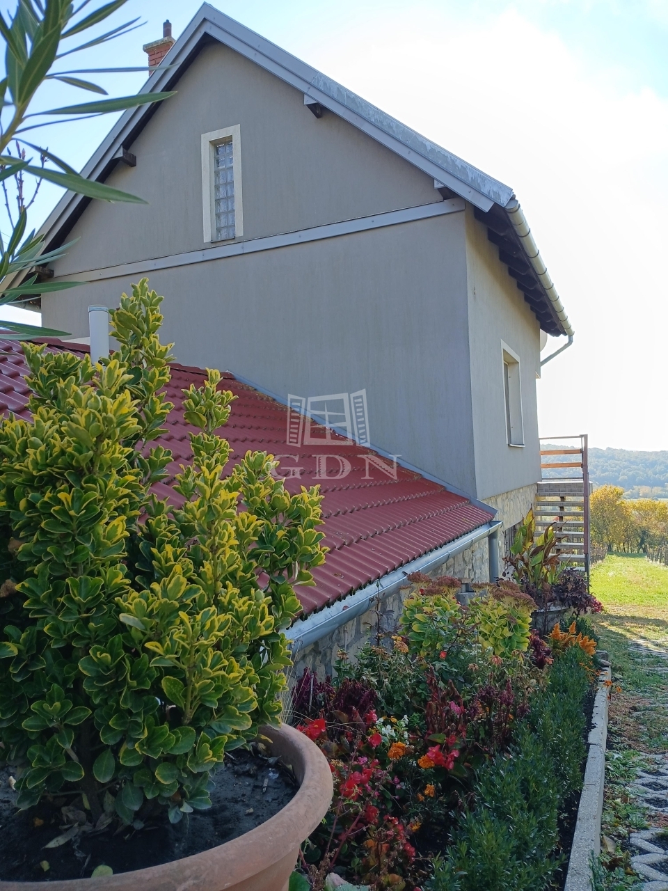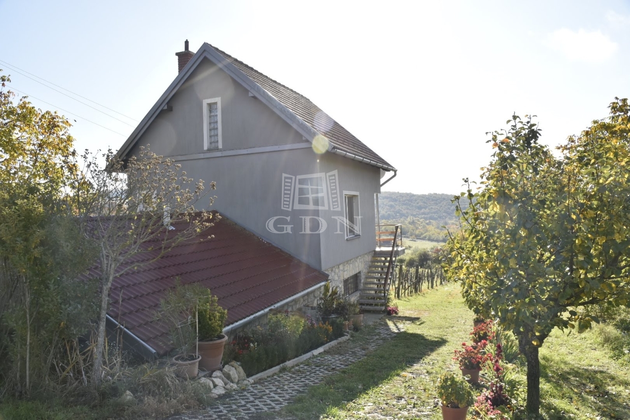 Eladó egy hangulatos, háromszintes családi ház Óbudavár zártkerti részén, gyönyörű kilátással a Balatonra és a Nivegy-völgyre.