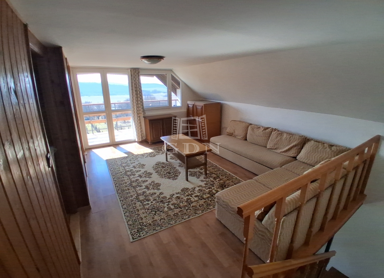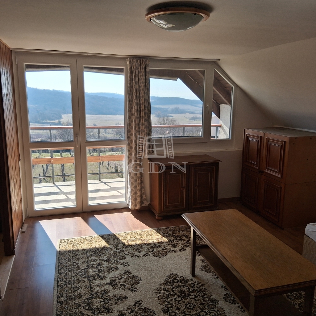 - A felső szinten egy otthonos, napfényes, tágas nappaliból nyílik az erkély, ahonnan csodálatos kilátás tárul elénk. Itt még két félszoba kapott helyett.