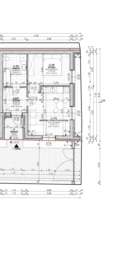 Két kényelmes, jól alakítható szoba mellett egy 4 m²-es terasz is helyet kapott, amely tökéletes hely a reggeli kávézáshoz.