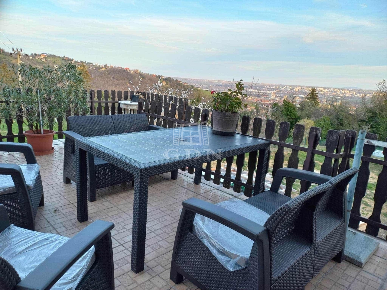 A hatalmas teraszról gyönyörű panoráma tárul elénk, a Mecsekre és a városra, de igény esetén akár be is építhető.