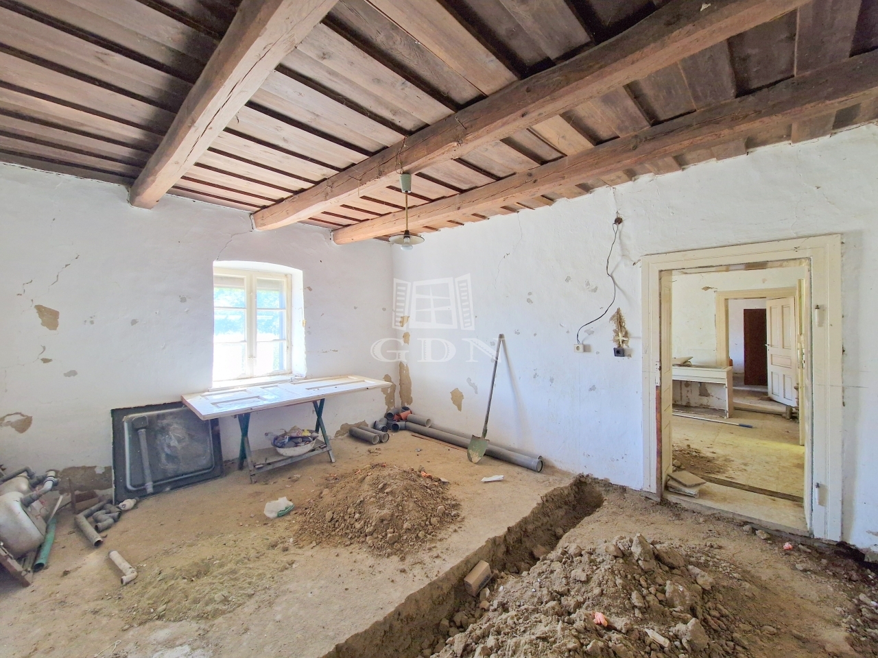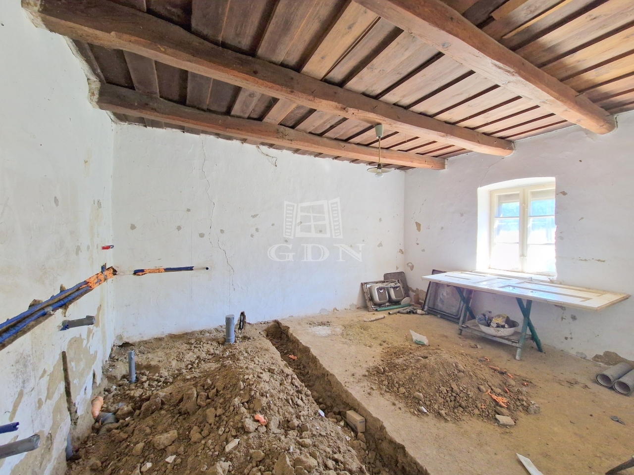 - Az épület közműellátottsága: vezetékes víz és áram megtalálható az ingatlanban, a saját emésztő kialakítása pedig elkezdődött.