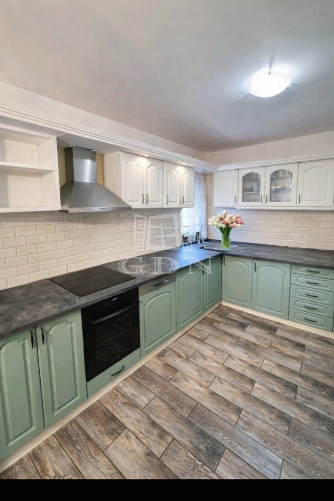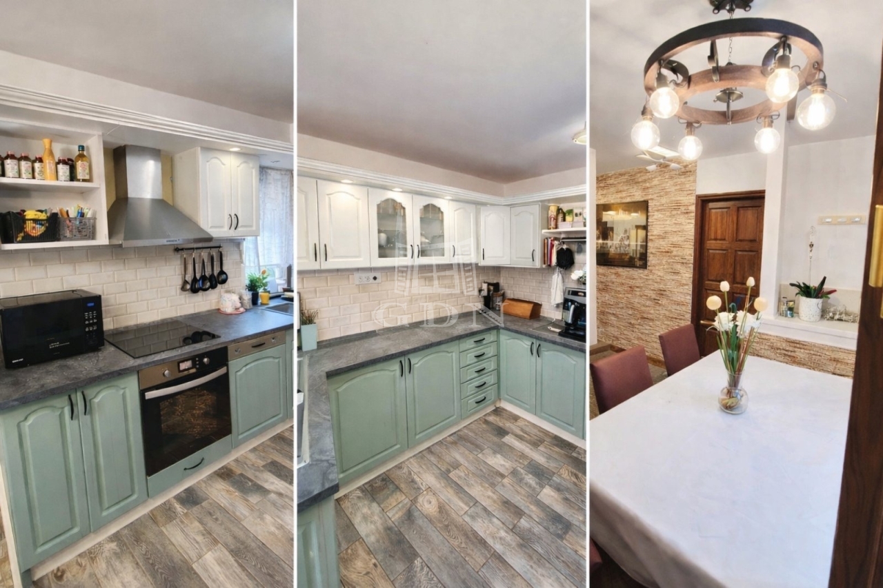 Felszereltsége: Indukciós főzőlap, pára- és szagelszívó, beépített mikrohullámú sütő, beépített elektromos sütő, illetve mosogatógép kapott helyet.