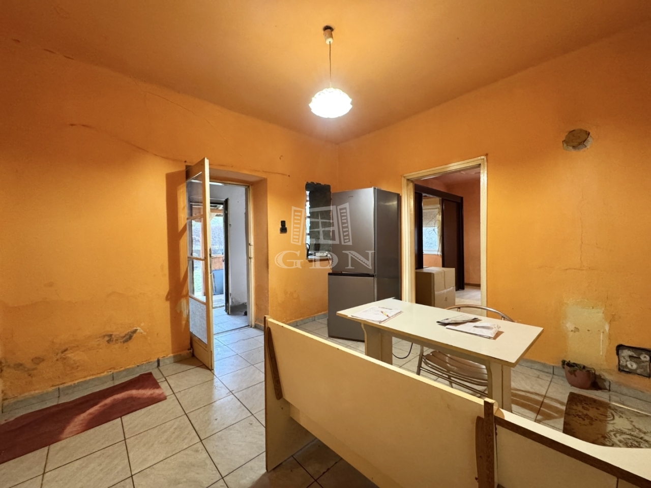 Elosztását tekintve 80m2 hasznos alapterületű. Előtér, étkező, konyha, kamra, fürdőszoba, 2 szoba és egy félszoba került kialakításra.