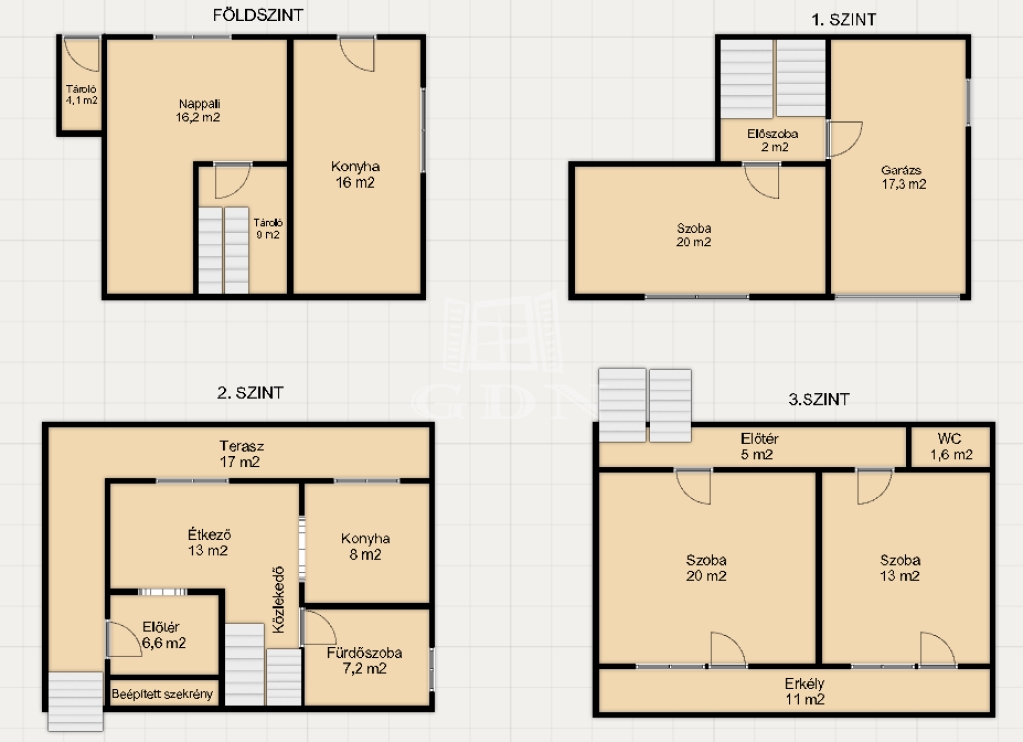 A ház vasbeton födémmel rendelkezik, tetőfedése cserép.