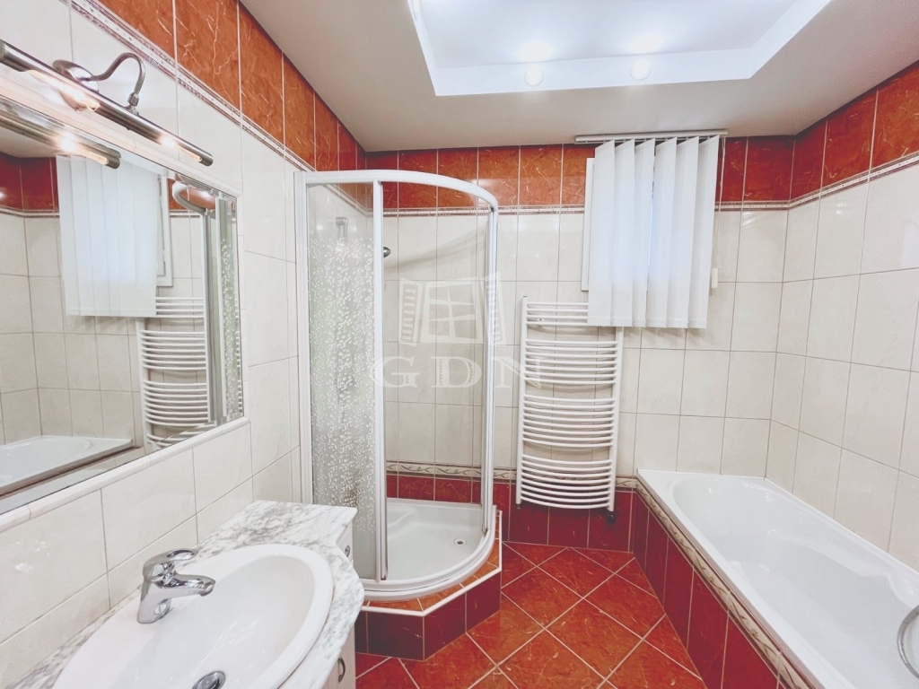 A lakótérhez kapcsolódik egy 17 négyzetméteres terasz és egy 6 négyzetméteres erkély is, amelyek tovább növelik a komfortérzetet. A fürdőszobák jól felszereltek, mindkettőben megtalálható kád és zuhanyzó is, az egyikben sarokkád került kialakításra.