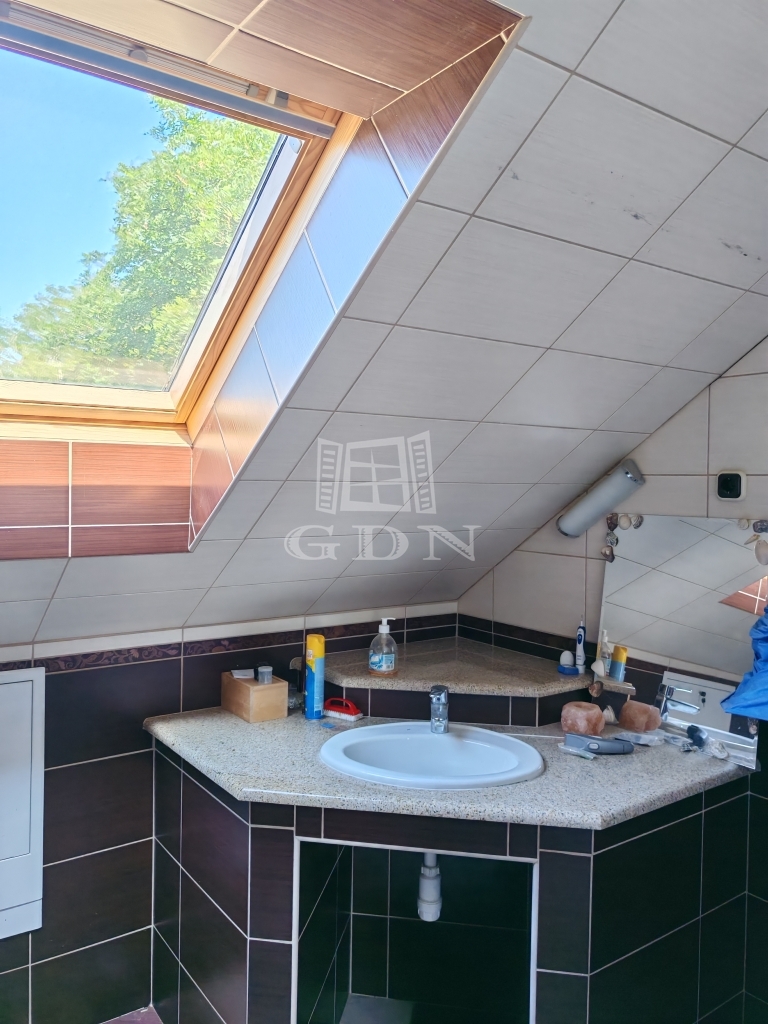 A helyiségek járólapokkal és laminált padlókkal fedettetek. A tetőtéri és a jól elhelyezett ablakoknak köszönhetően az ingatlant körbejárja a napfény, nincs sötét zug.