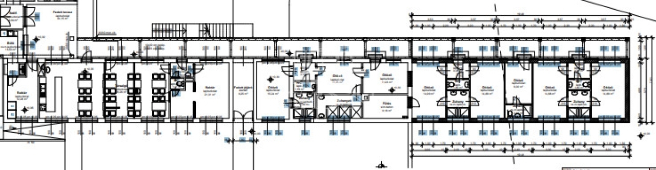 Az emeleti részen kaptak helyet a szobák illetve egy 2 helyiségből álló iroda.