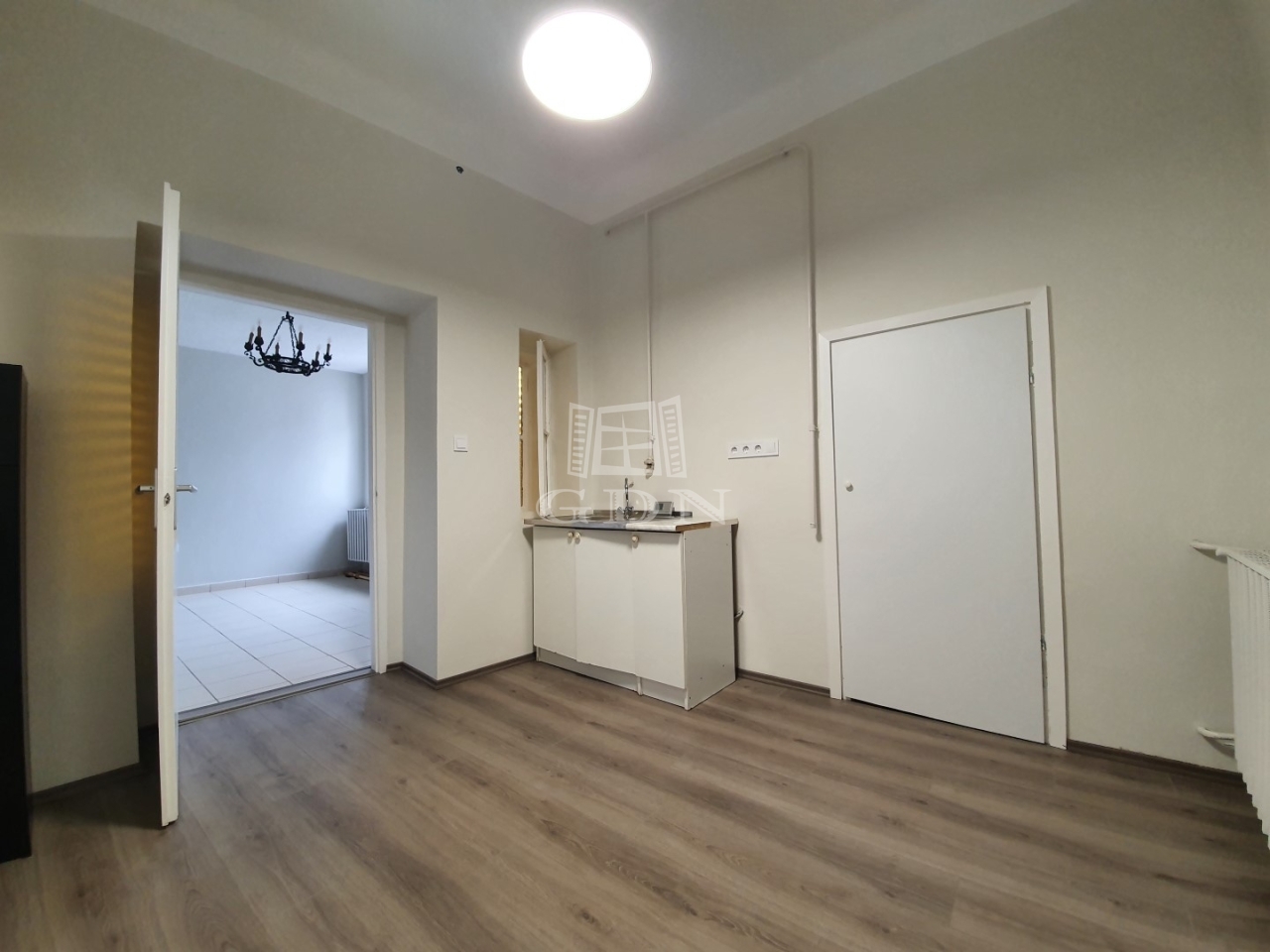 A bérlemény 2 egybenyíló helyiségből áll, saját mellékhelyiséggel. Az egyik szoba utcára néző, reklám szempontjából kiváló. A bérlemény udvari bejáratú, az előszobarész közös használatú. Az ingatlan fűtése gázkazánnal, radiátorral megoldott. Parkolás közterületen, kedvezményes fizetős parkolási díjjal akár az épület elött.