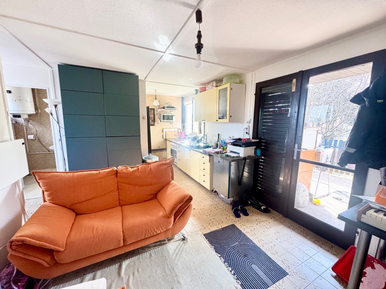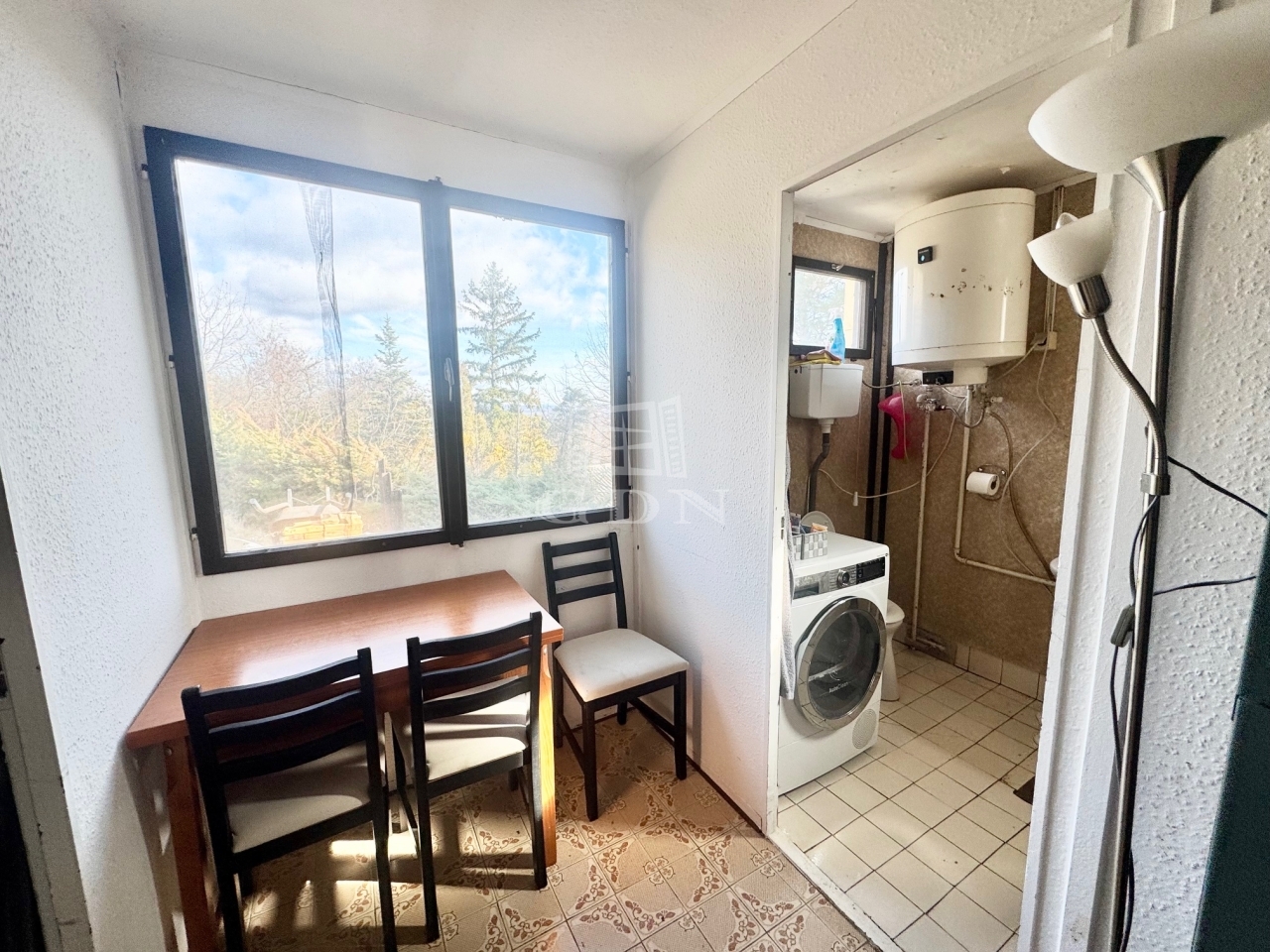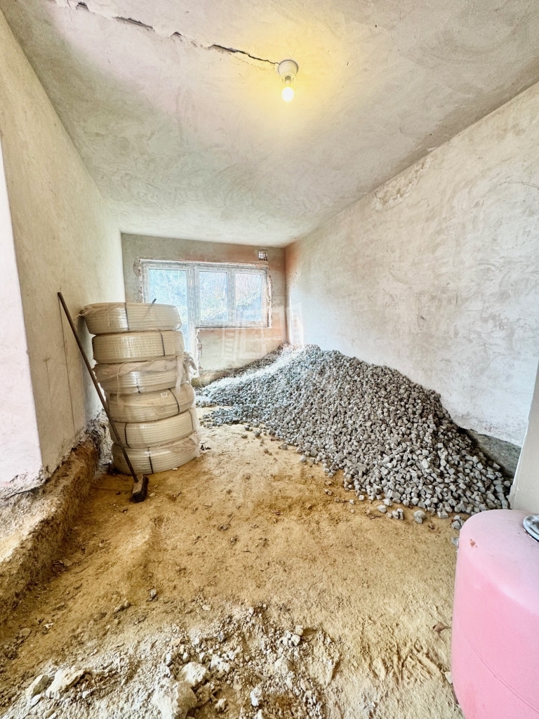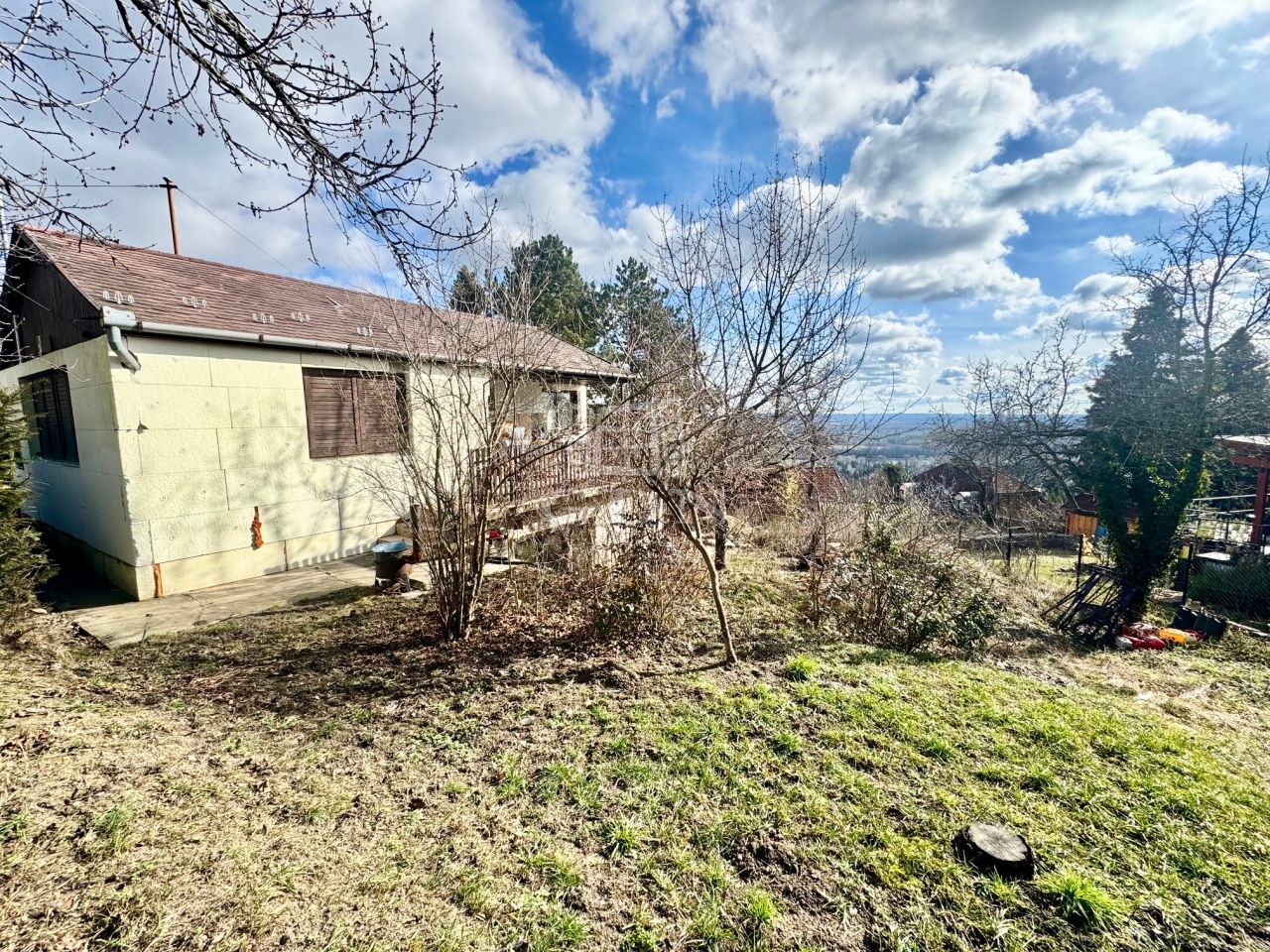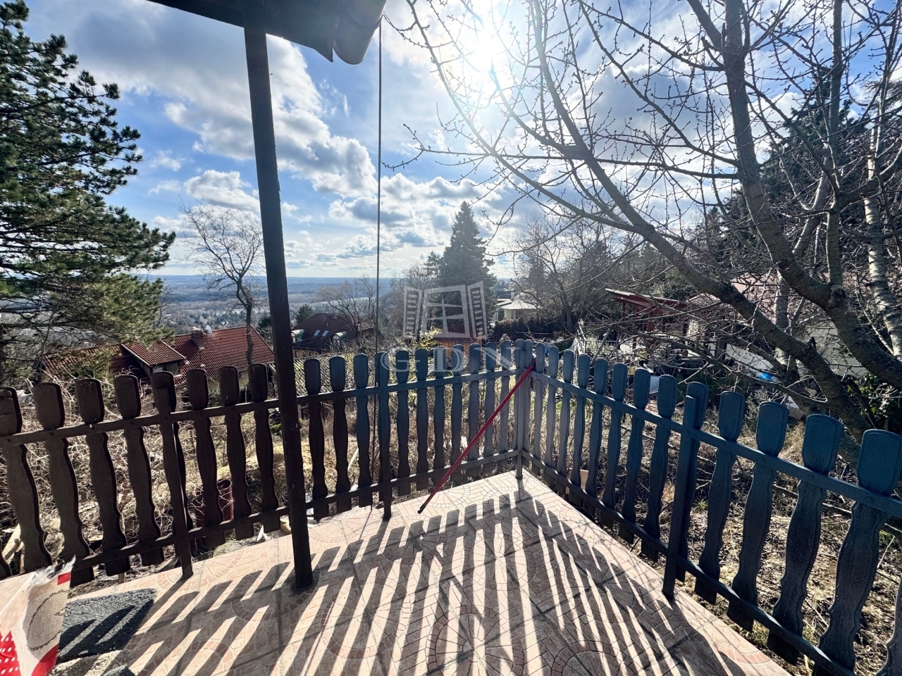 Szentendre kedvelt hegyvidéki környezetében, Tyúkosdűlő csendes aszfaltozott, mellékutcájában, ÜH/1 övezeti besorolású, 883 nm-es, telken, 1950-ben 30 cm-es téglából épült, 50 nm-es lakóterületű, 2 szobás, lapostetős, monolit betonfödémes, 3 rétegű nyílászárókkal szerelt lakóház eladó. A már meglévő épületre egy 50 nm-es, lakóterületű, 3 szobás könnyűszerkezetes, 10 cm-es külső hőszigeteléssel ellátott, összkomfortos faház került elhelyezésre, amihez egy dunai örökpanorámás 25 nm-es terasz kapcsolódik. Az épületegyüttes kiváló elosztású, napos-világos fekvésű, elektromos fűtésű, alsó része építés alatt álló a felső részét tekintve lakható, átlagos állapotú. Igény esetén a faház elbontását követően a két szint összeköthető, és akár tégla falazattal épített felső szint kialakítható.