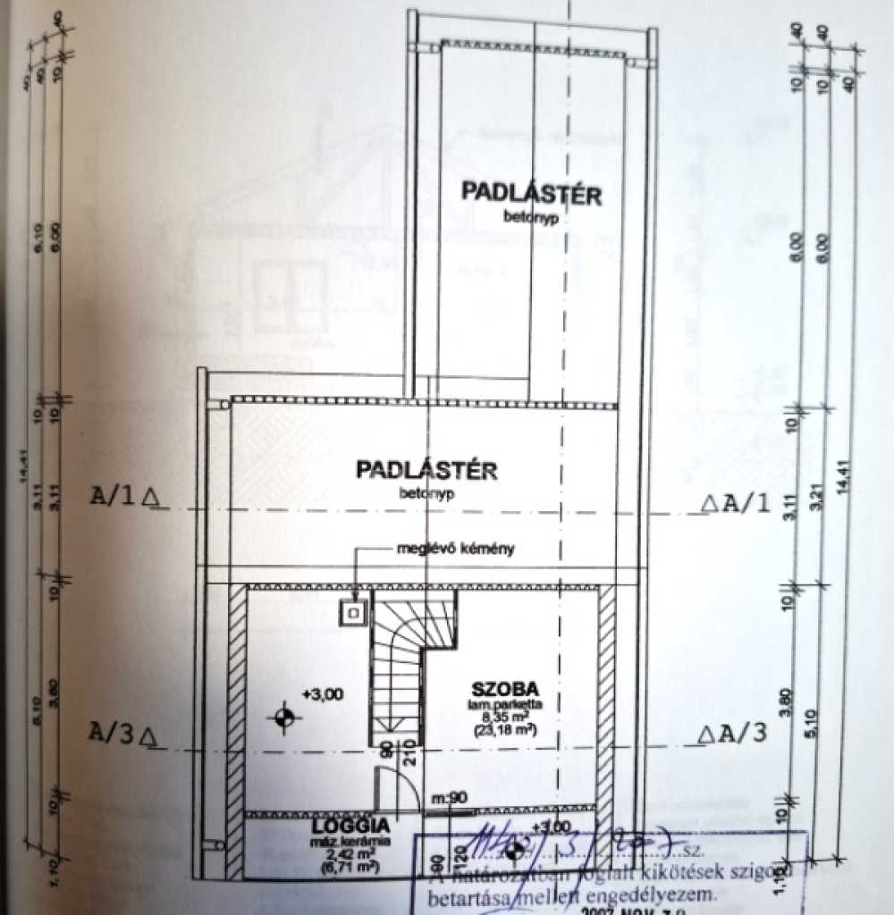 az emelet helyiségei: szoba 23,2 m2, fürdőszoba 3,4 m2, loggia 8,5 m2.