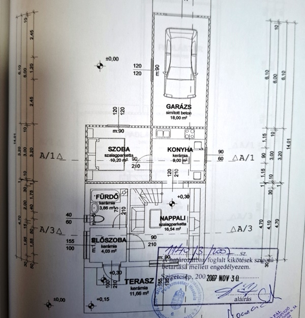 Az otthon helyiségei: földszinten előszoba 3,2 m2, nappali teraszkapcsolattal 16,5 m2, konyha 8,2 m2, szoba 12,5 m2, fürdőszoba 4,6 m2, terasz 20 m2, garázs 21,0 m2,