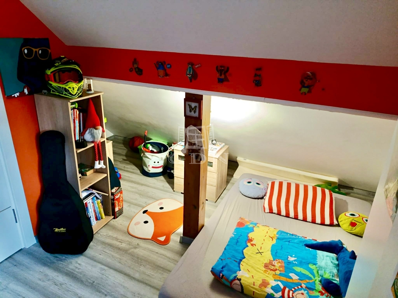 A földszinten található előszoba, nappali, konyha, fürdőszoba. A tetőtérben kapott helyet a két hálószoba.